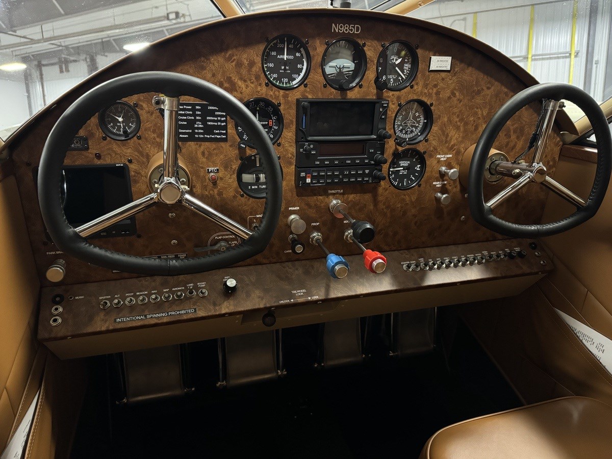Serv-Aero conversion to Pratt & Whitney R-985, 450HP which includes: Serv Aero engine mount 10 Gallon oil tank moved to aft fuselage for CG, total 13-gallon capacity system Hamilton Standard 2D30-6167A-12, 102” propeller, consecutive blade serial numbers, and Montgomery Spinner Modified Beech 18 cowling Oil Cooler |