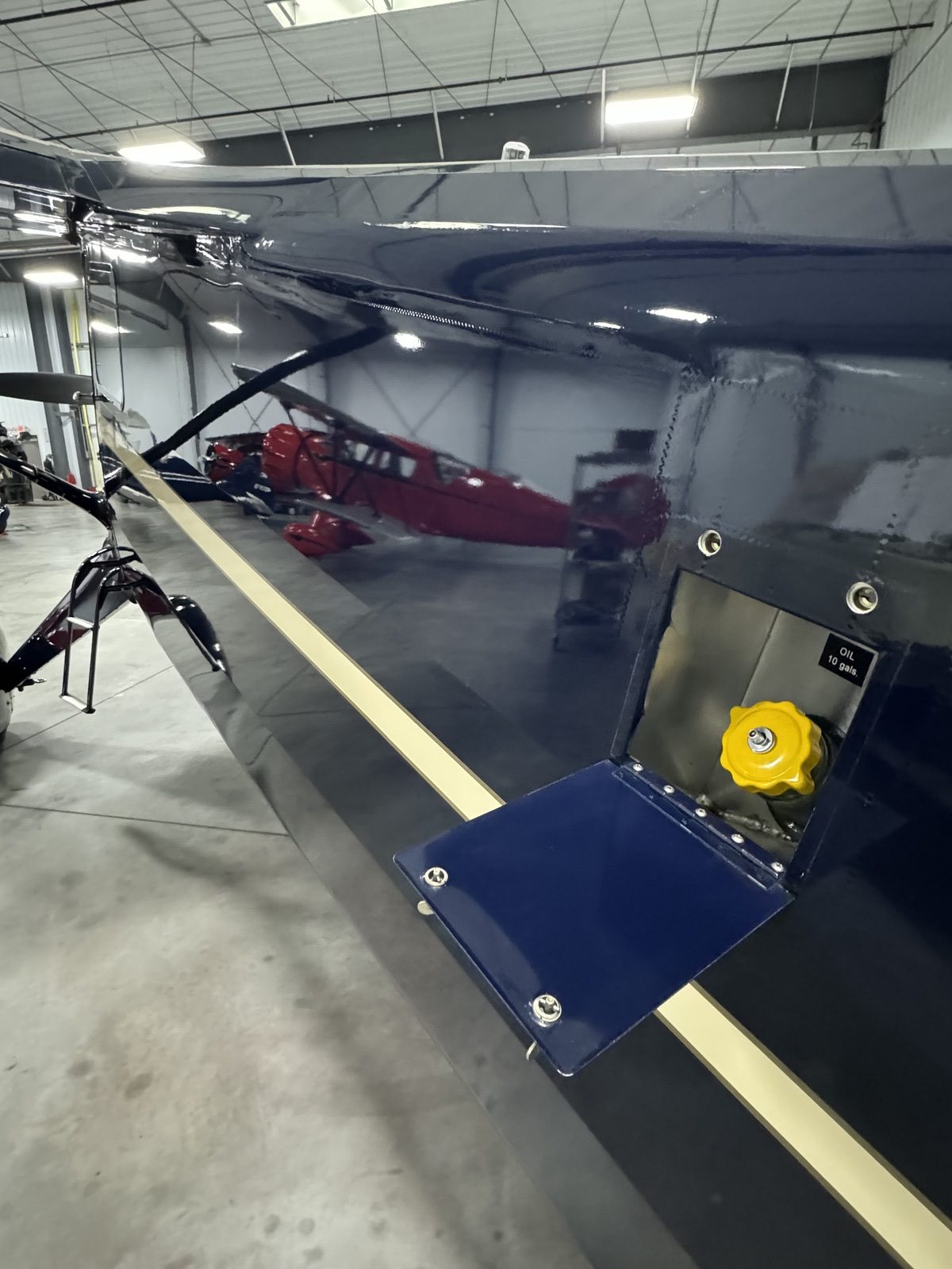 Cleveland Wheels and Disc brakes Pilot and Co Pilot brakes 10 x 3.50-4 tailwheel tire STC Center locking tailwheel Electric fuel boost pump Air Wolf oil filter Air Wolf air oil separator Pesco wet vacuum pump Jasco Alternator Whelen LED Beacons Grimes retractable landing lights Grimes Navigation lights LED map lights MVP-50 Engine Monitor Garmin GTN 650 GPS/Com Garmin GTR 225 Com GTX 345 R Transponder, ADS-B in/out, Bluetooth GMA-350 Audio panel & ICS Aux panel power plug Heated pitot ACK E-05 ELT Stock, aft battery installation with access door Aux power plug for battery Metal fuel tank cover |