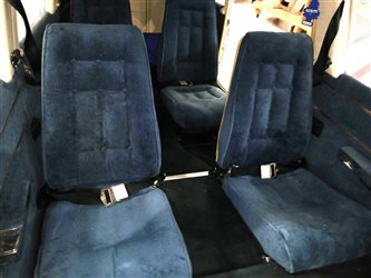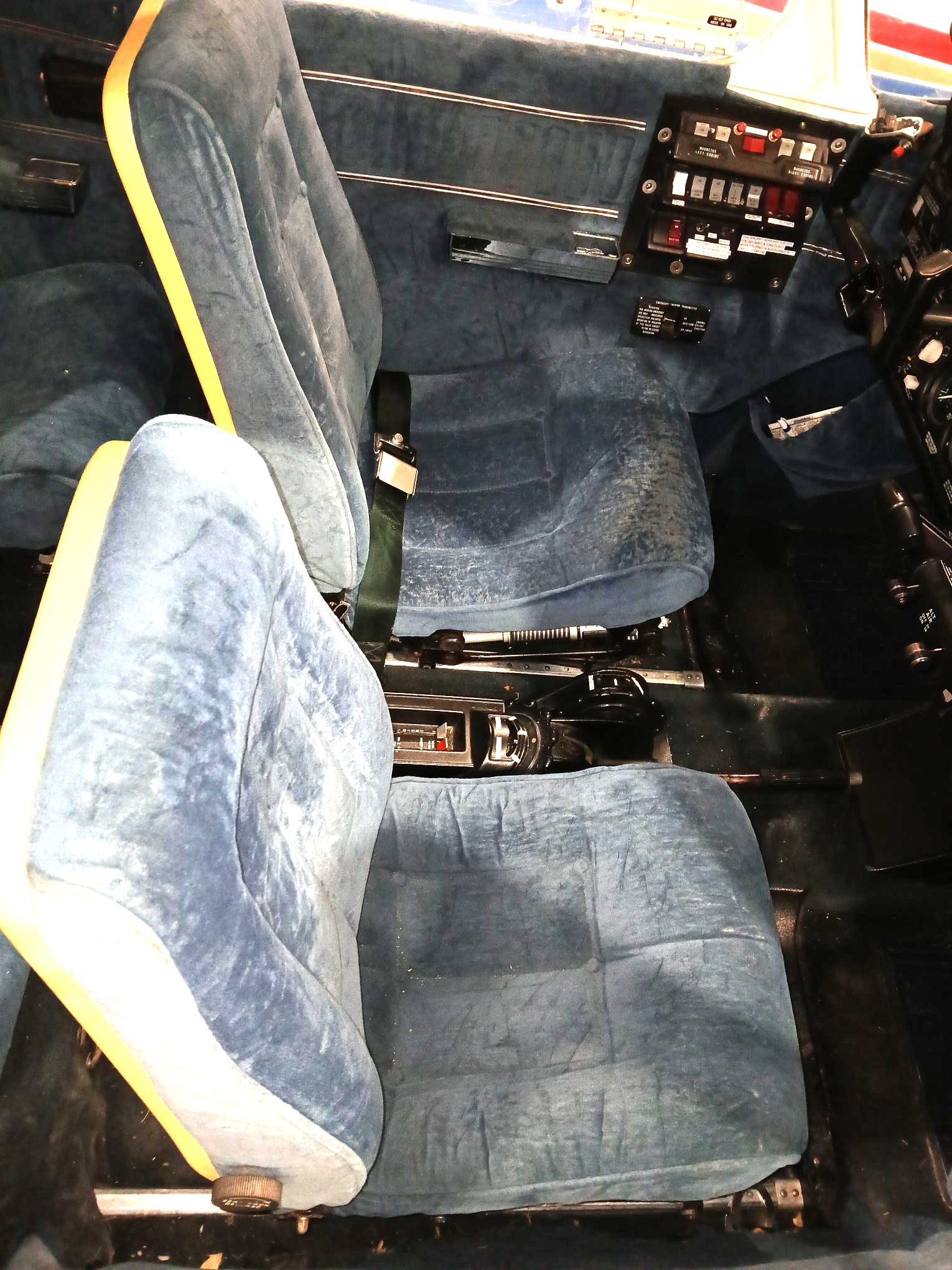 | Blue Velour upholstery replaced in 1988 is in Good condition. Plastic trim is discolored with some cracks. | |||||||
