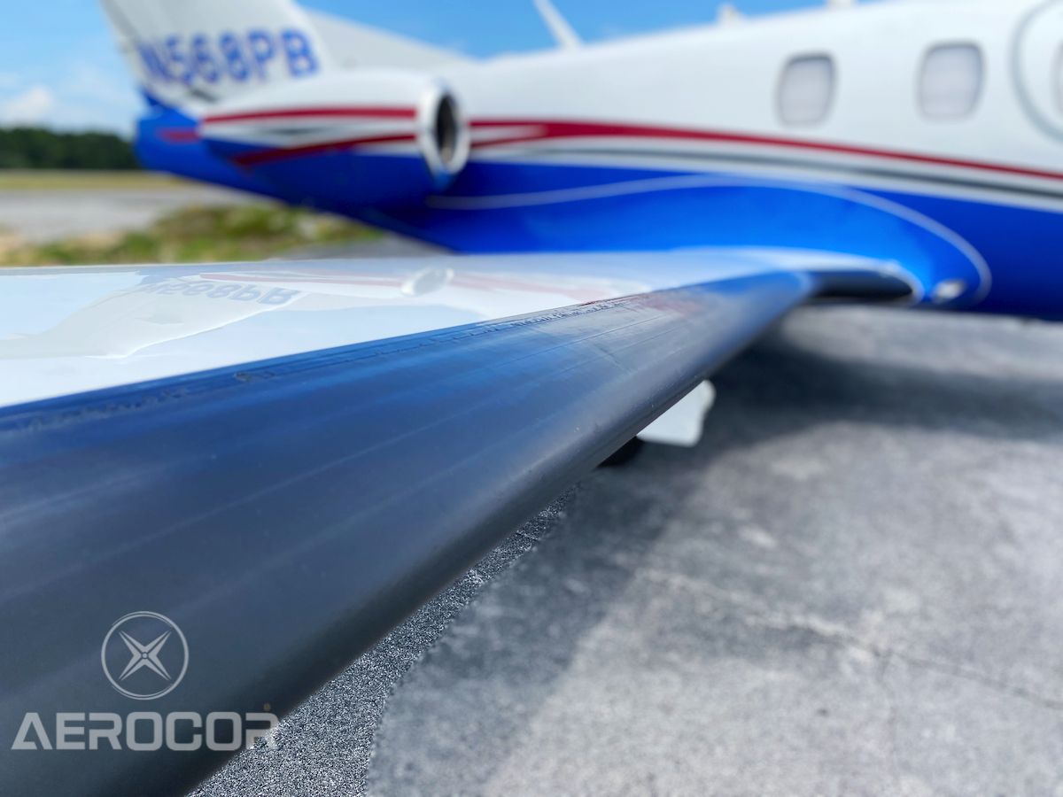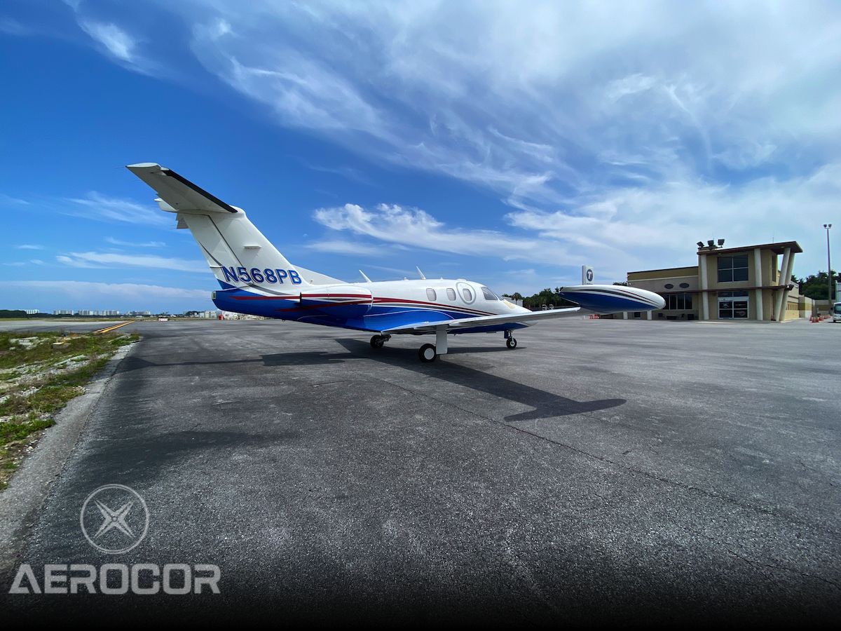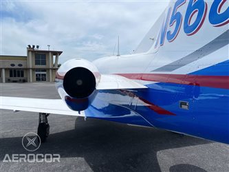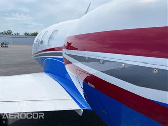 | Custom Exterior Paint Scheme By Hill Aero (completed May, 2016) All exterior labels silk screened (upgraded from original stickers) LX Edition ($39,995 option) (Upgraded passenger cabin appointments including all leather passenger seats with forward leather storage pouch & aluminum seat belt buckles, down wash lighting beneath cabin side bolsters, gross point-covered lower sidewalls, 110v power outlets, and built-in coat hooks. Additional cockpit appointments include all leather pilot & copilot seats with adjustable lumbar support, padded knee supports, metal thrust lever knobs, and foot well lights.) Newer 550-style window shades Partially upgraded interior – Includes “Single Piece” Headliner Skywatch HP TAS (Traffic Alert System) ($31,950 option) Class B TAWS (Terrain Awareness and Warning System) ($21,000 option) Installation Kit (Required when installing certain options) ($19,875 install) Upgraded Color Weather Radar (RDR-2000) ($22,950 upgrade) 40 cu. ft. Oxygen Tank & Copilot’s Quick-Don Mask ($49,950 option) Tamagawa Landing Gear Actuators ($47,500 upgrade) PPG Glass Windshields ($74,500 upgrade) ADS-B “out” ($24,900 option) Upgraded combustion liners installed (Certified for flight to 41,000’) Upgraded / Newer style wing tip lights (position / strobe lights) ($11,163 upgrade) Polished Window Frames ($6,590 option) Cockpit Sheepskin Seat Covers RAS “Alternative Maintenance Program” STC ($12,495) Upgraded “dash 5” aft power distribution center (SB500-24-004 Rev. C) 6th Passenger Seat ($24,950 option) RAS replacement air conditioning unit ($12,950) RAS Battery Bus Contractor Mod / Battery Parasitic Drain Elimination Kit ($4,495 upgrade) RAS 12 month battery cap check STC (extends battery insp. from 6 months to 12 months) RAS Upgraded 24 amp System Battery ($1,995) RAS Upgraded 24 amp Start Battery ($1,995) RAS Icephobic “patch” removal STC – ($3,990 for STC, $5,000 for paint / installation) NOT SHOWN IN PHOTOS | |
