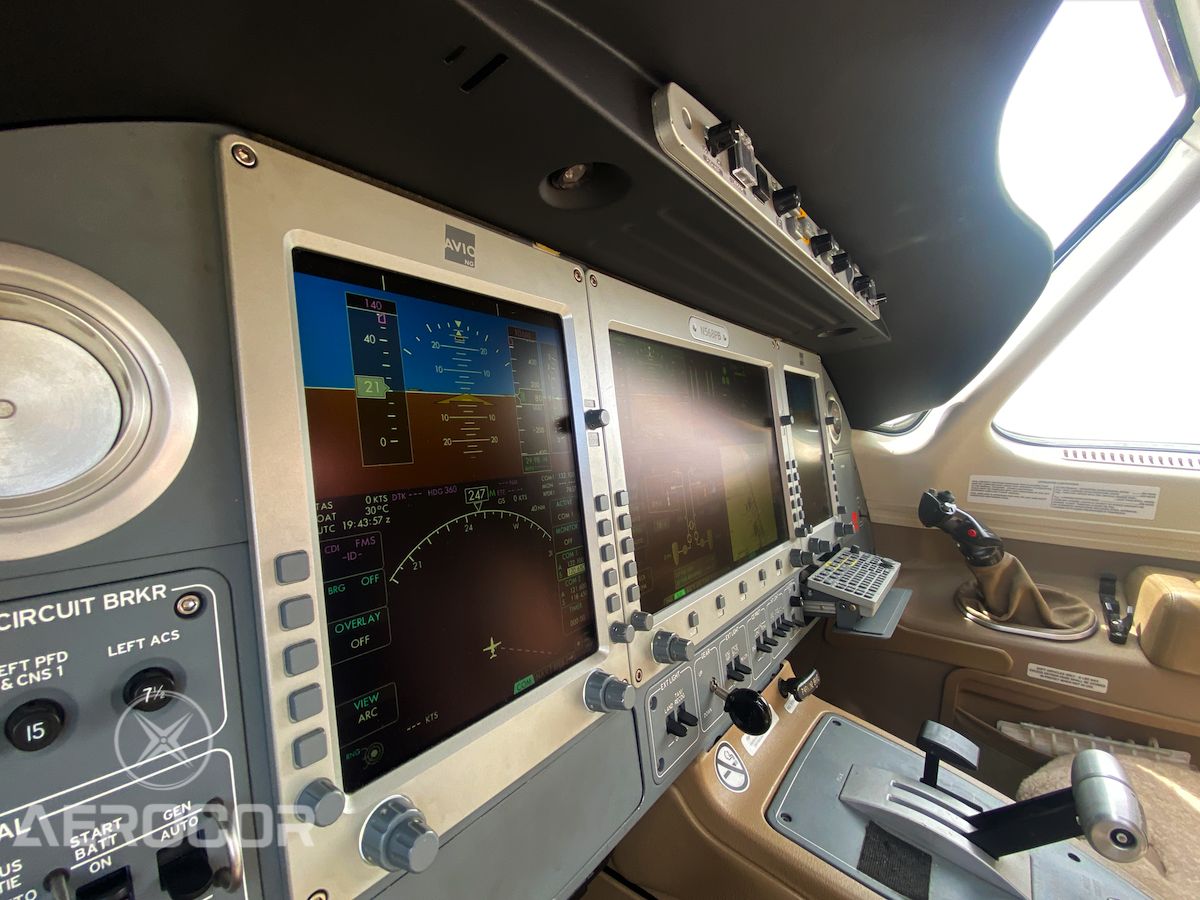 | Integrated Flight Management System (IFMS) v2.08 by IS&S Standard features include: Two Primary Flight Displays (PFDs) One 15” Multi-Function Display (MFD) with airliner-style synoptic displays of all aircraft systems Color Weather Radar XM satellite Downlink Weather Geo-Referenced Jeppesen Approach Plates Fully Coupled Autopilot (Including Coupled LPV Approached) Flight Into Known Icing (FIKI) | |