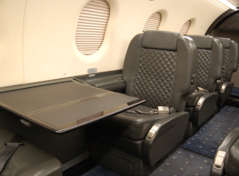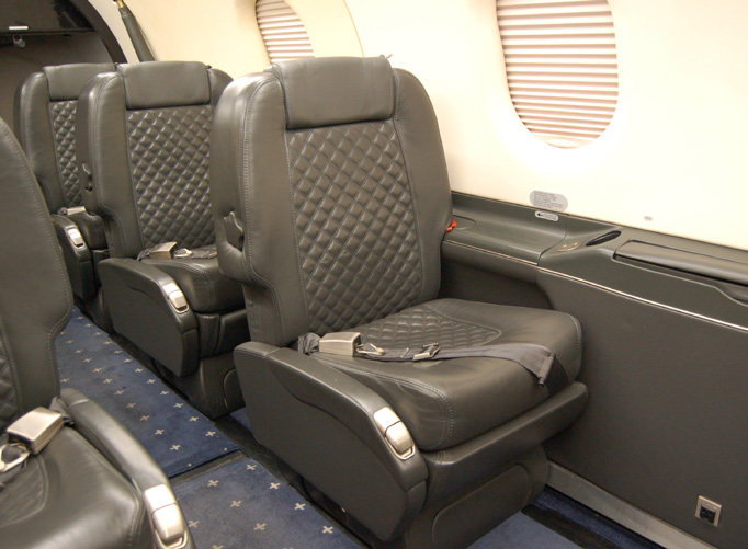 BMW Platinum Executive 8 Seat Interior Package Seat Leather: Aeronappa Obsidian Quilted Seat Facings Upper Cabin: China White Cabin Drink Rail: Aeronappa Obsidian Lower Sidewall: Aeronappa Obsidian (Grain) Wood Veneer: Qtr. Ebony Composite Wood Finish: Gloss Cockpit/Cargo Curtain: Kvadrat Field Pillow: Aeronappa Obsidian (Grain) Five 110V cabin power outlets Three cabin USB ports |