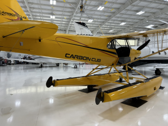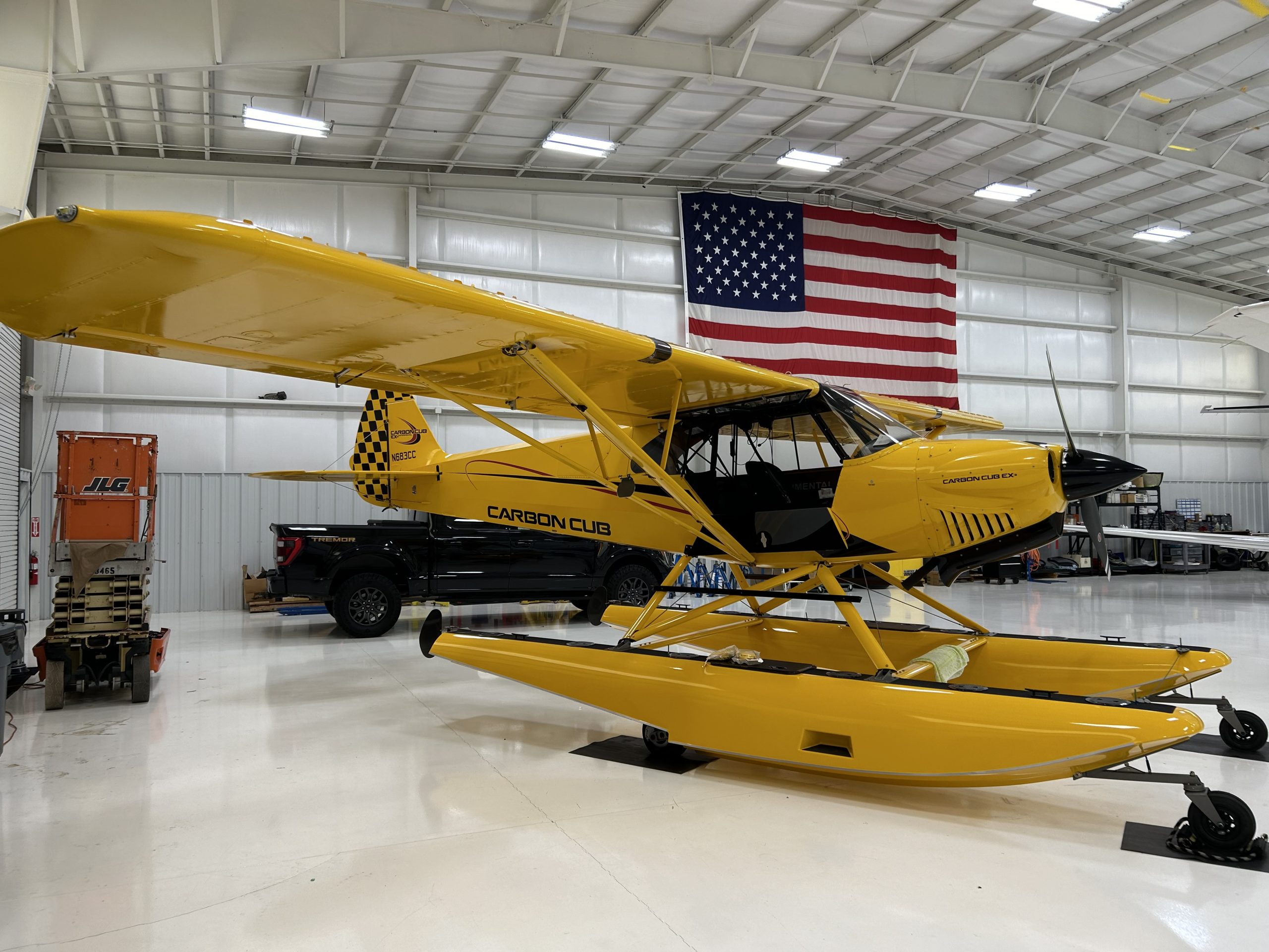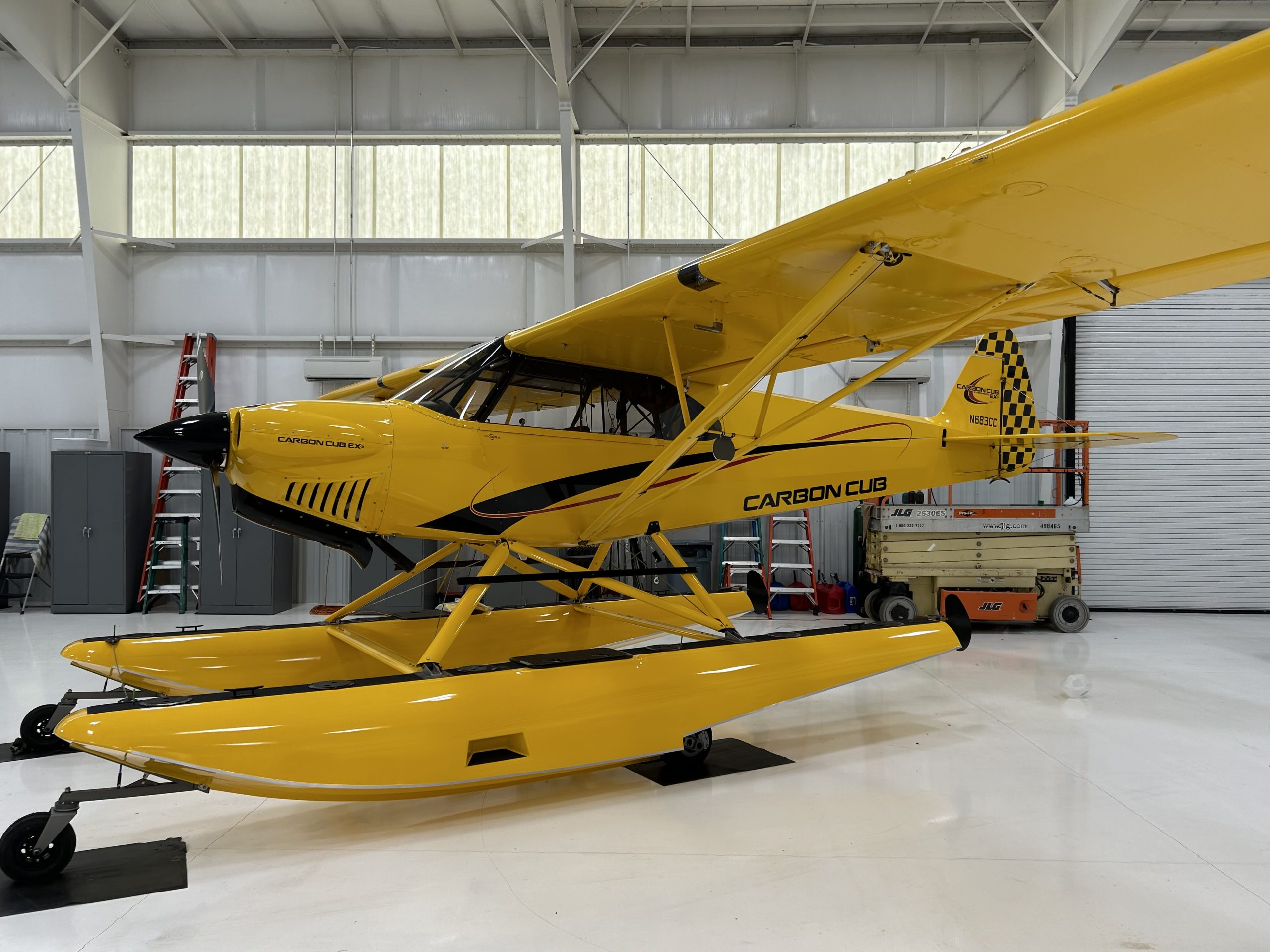 | CubCrafters 2020 Carbon Cub EX-3. New Clamar Floats installed in February 2024 (with Clamar Gear IQ alert, Actuation and Induction System), dual water rudders, 3/8″ walking wire, a full Garmin G3X avionics suite (G3X Touch, Engine Monitor, ADS-B in and out, dual VHF comms, and autopilot. 448TT, Lycoming 186 HP engine, Reiff engine heater, Hartzell Trailblazer CS prop, Oregon Aero front & rear seats, and a classic yellow paint scheme. | |