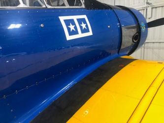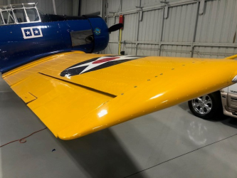 | The SNJ-2 is one of the rarest versions of the SNJ/T-6 series aircraft. Only 61 were ever built. N40HS is one of the few that was never used commercially for skywriting. Hence the aircraft has extremely low airframe time. The SNJ-2 also incorporated a long range 180-gallon fuel system giving outstanding range. N40HS has been professionally restored and pampered since restoration. | |