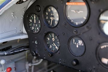 Pilot: Com: 720 channel COM radio included (rack mounted, not shown) Transponder: Bendix/King Mode C transponder Encoder: Remote encoder ADS-B: No ADS-B Out Whisky compass (lower) RPM indicator Airspeed indicator, knots Altimeter Artificial horizon, vacuum Directional gyro Vacuum indicator Electronics International battery digital indicator, volts, amps Climb descent indicator Turn and bank indicator Oil temperature indicator Oil pressure indicator Datcon hour meter (located on aft left inside of engine compartment) Avionics master switch Fabricated gray metal instrument panel, 2001 Copilot: Whisky compass (lower) Airspeed indicator, knots Altimeter Artificial horizon Dial compass Climb descent indicator Turn and bank indicator Oil temperature indicator (placarded inop) Oil pressure indicator (placarded inop) |