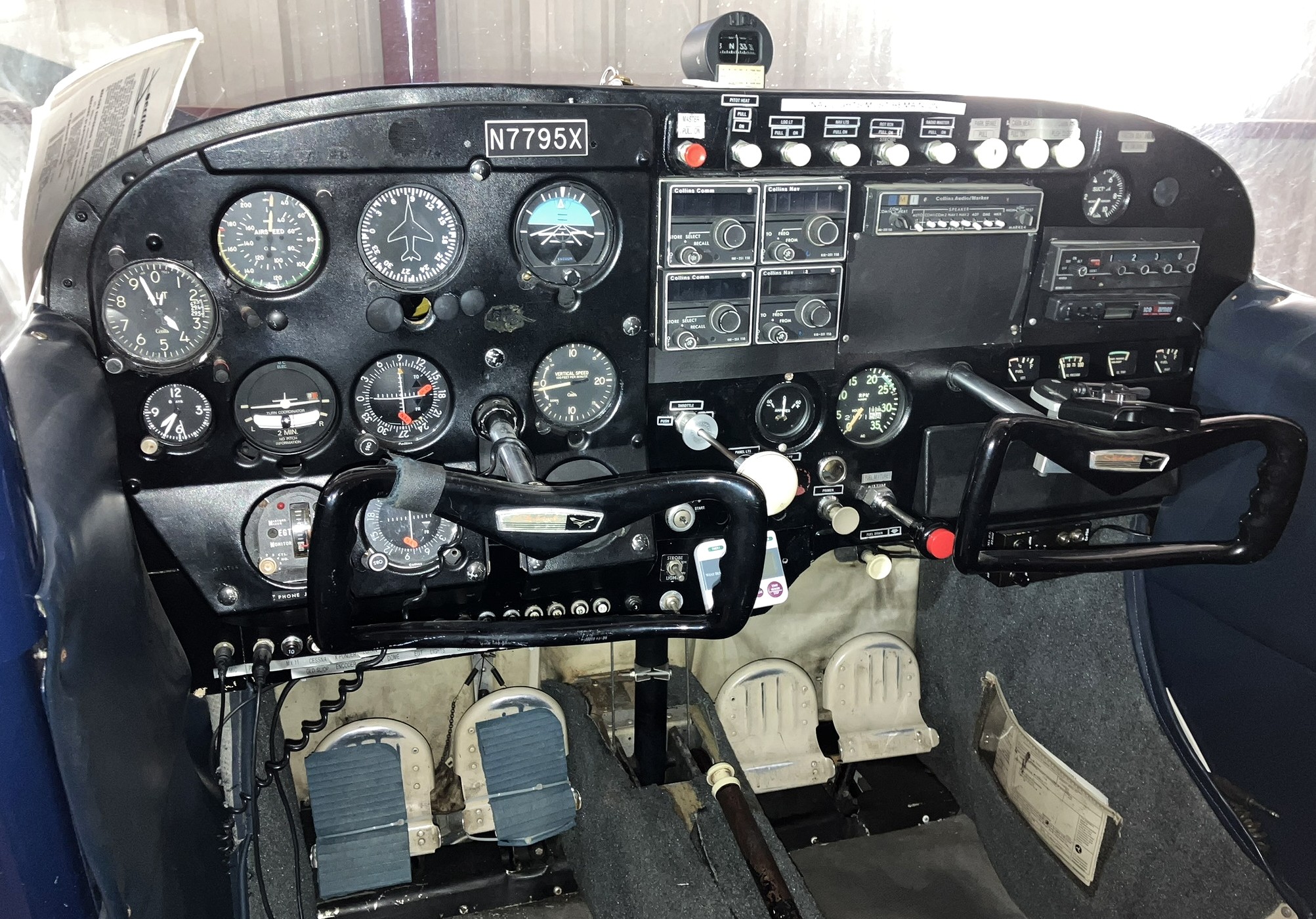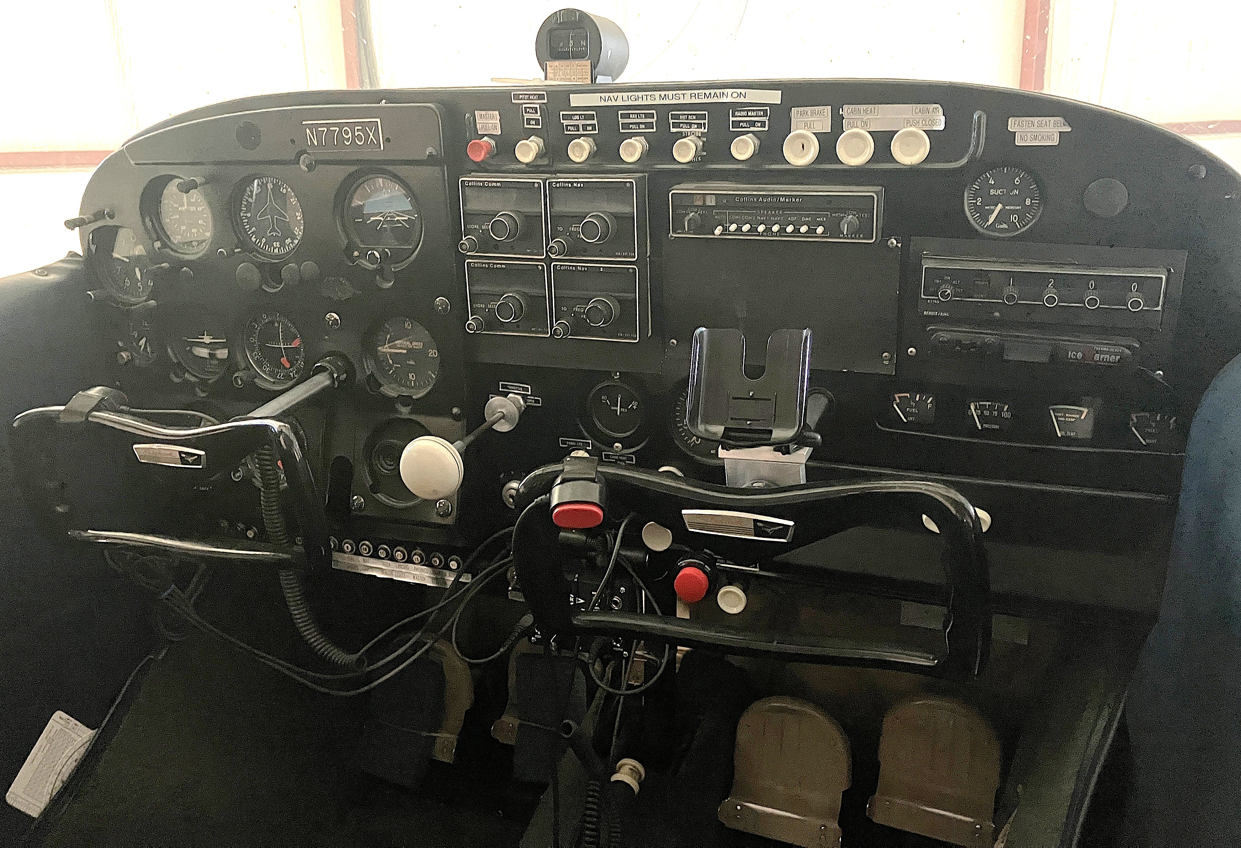 Collins AMR-350 Audio w/MB (2) Collins VHF 251 comms (2) Collins VIR 351 Navs, 1 with CDI w/GS King KT76A Transponder uAvionix SkyBeacon ADS-B out Garmin 696 Portable GPS MixMaster Single Probe EGT Sigtronics Transcom II Intercom Pilot/copilot yoke PTT switches Ram yoke mount for GPS |