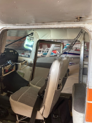 4 place intercom. Shoulder harnesses. Original Cessna tow bar & custom steel tow bar for use with tug or golf cart. Additional Cargo or jump door with STC for passenger side. |