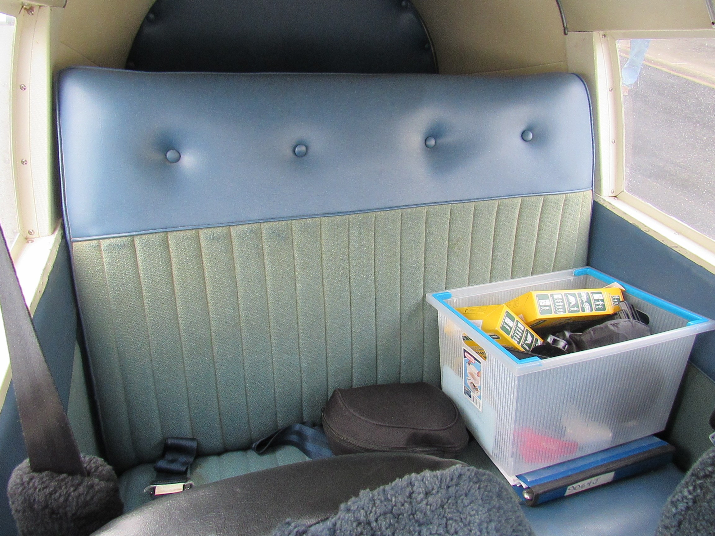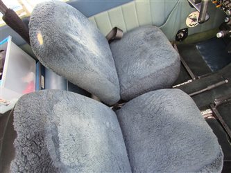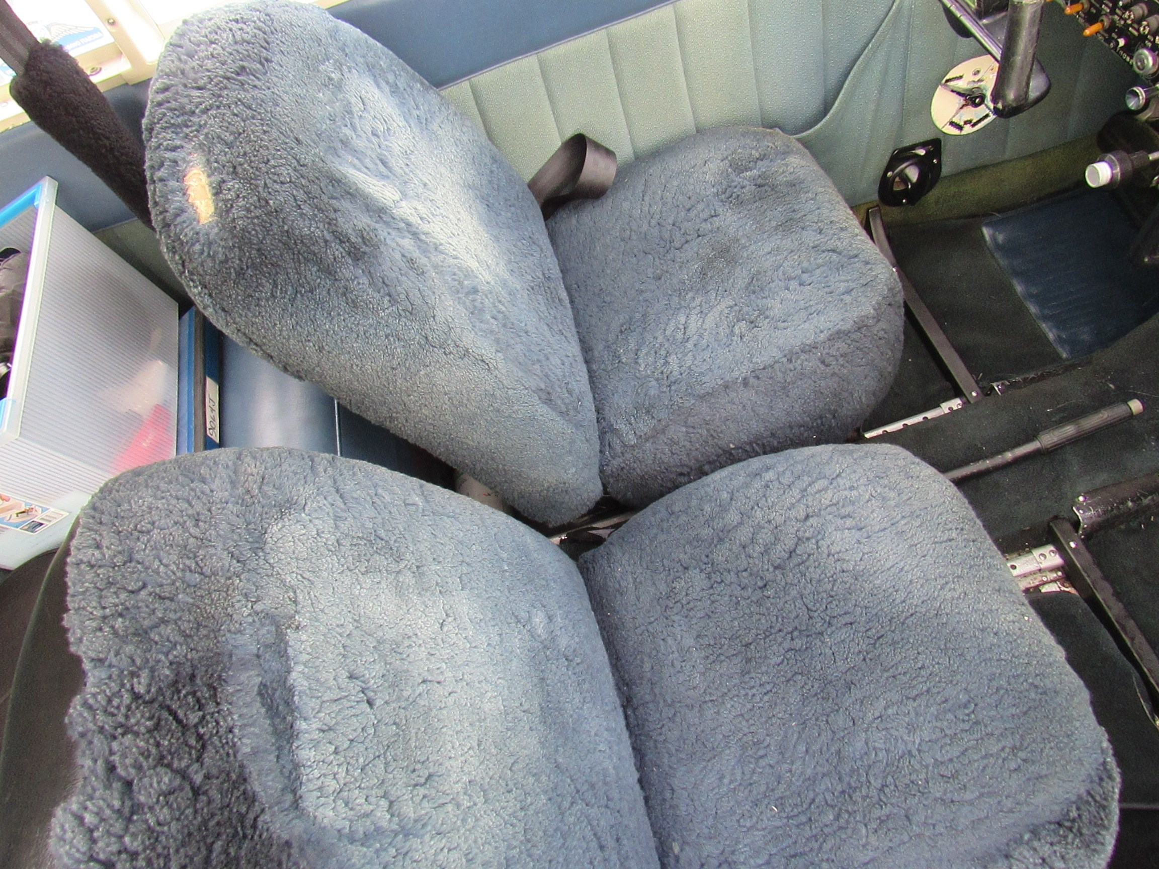 | Two-Tone Blue Cloth and Blue Leather seating and sidewalls with Blue sheepskin covered crew seats and Navy Blue Carpeting. Bench style back seat, Shoulder Harness System for front seats only. | |