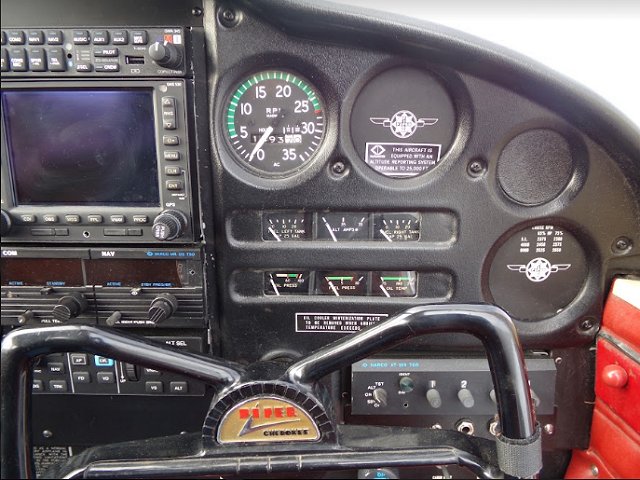 | Garmin GMA345 Audio Panel • Garmin GNS530 WAAS GPS/COM • Garmin G5 Attitude Indicator • Narco Mark 12E Digital NAV/COM • Garmin G5 DG/HSI • 4 Place Intercom • Narco AT-150 Transponder/Encoder • Garmin GFC500 Autopilot • Uavionix ADS-B OUT Wingtip Beacon • JPI EDM 830 Digital Engine Monitor | |