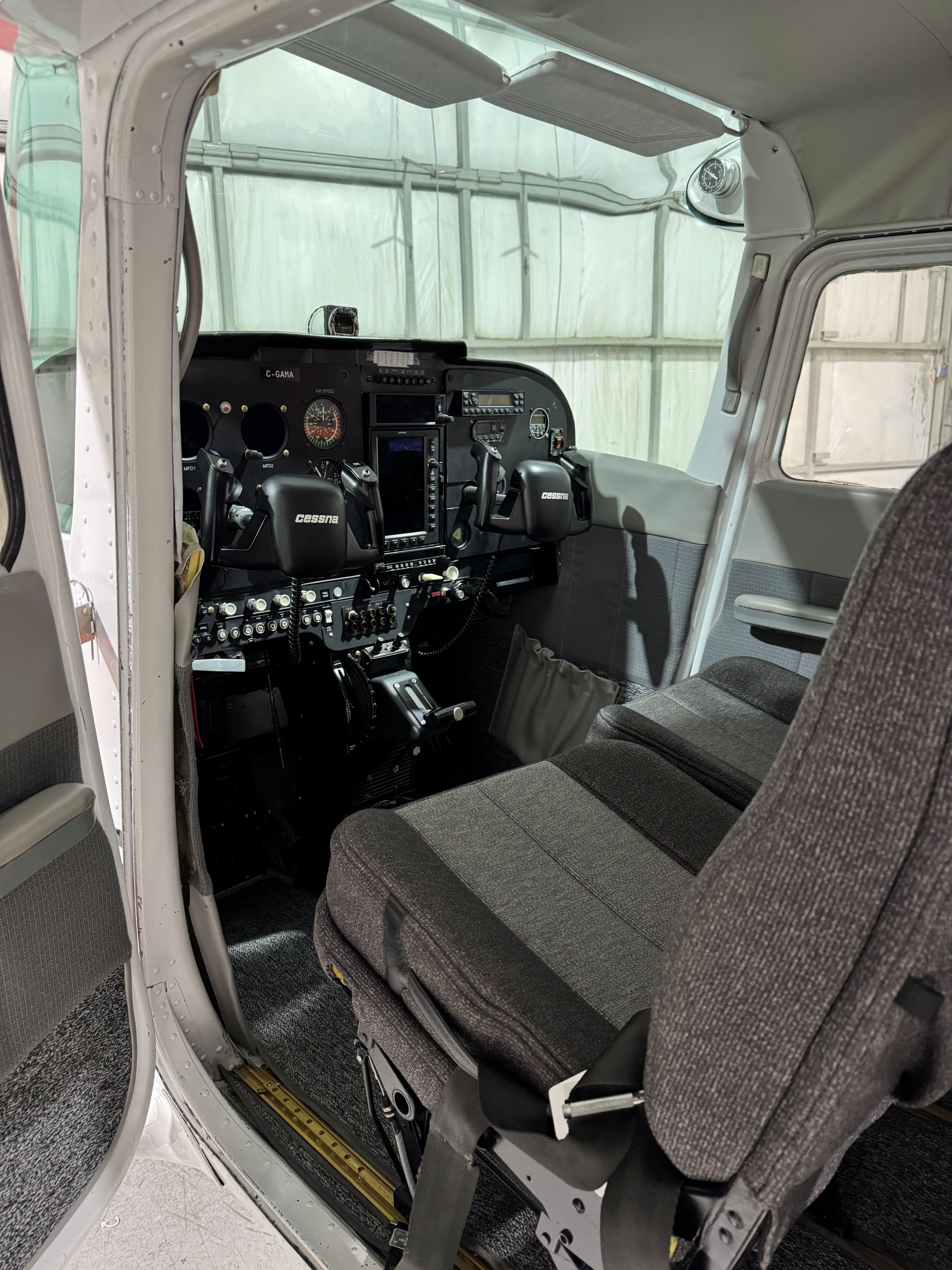 New interior ( certified with burn certs on material and foam) Rudder pedal extensions New Control yokes New Electronics international SC 5 super clock 406 MHZ ELT with remote switch with current recertification PS engineering 4 place intercom box |