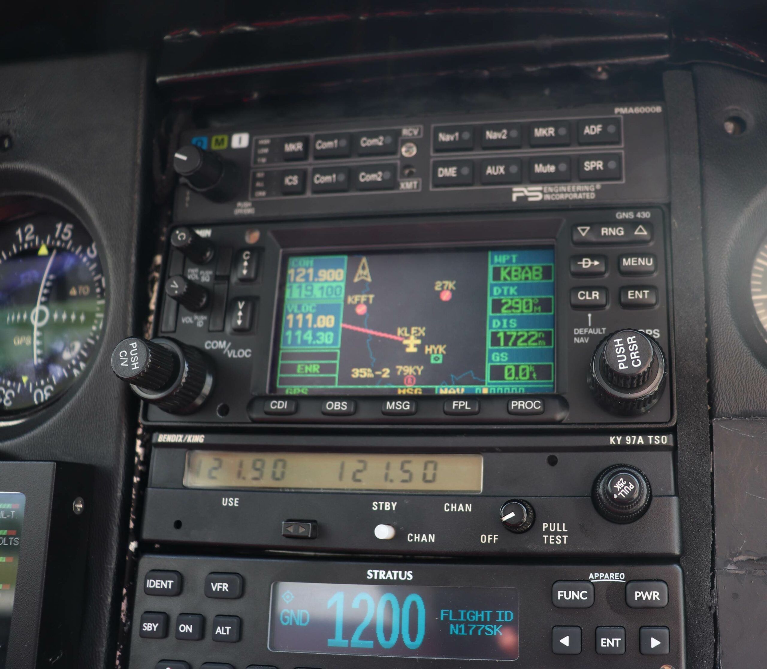 Garmin GNS430 IFR GPS/NAV/COM Bendix-King KY97A COM Appareo Stratus ESG ADS-B Transponder JPI FS450 Fuel Flow/Totalizer JPI EDM730 Engine Monitor PS Engineering PMA6000B Audio Panel MidContinent MD200 VOR/LOC/GS Indicator |