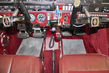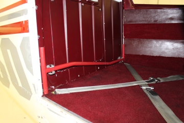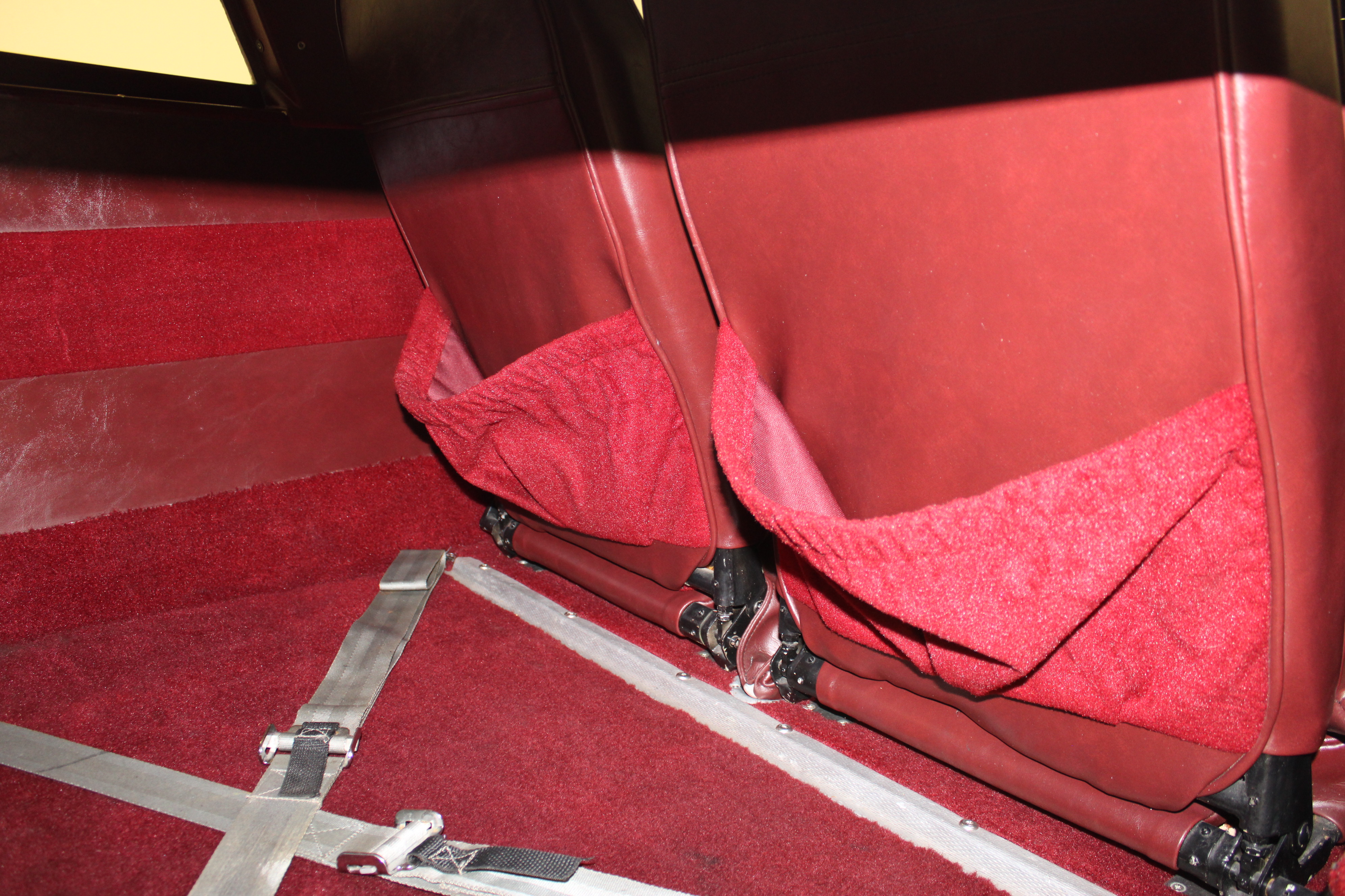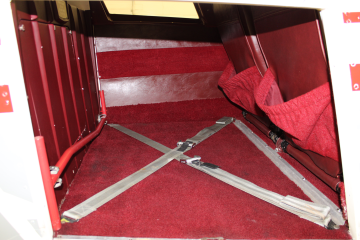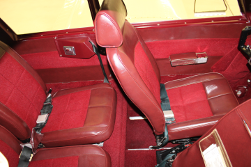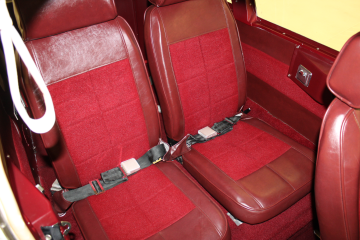 | The interior is in great condition, the seats look almost new and have red leather trim. There is one slight tear in the seam on the rear passenger seat. The headliner has some small stains near the front and the paint is flaking around off around the main door and cargo door. The carpet is all intact and looks almost new. There are no cracks in the dash and it looks great. The chrome below the armrests shows sign of wear. | |