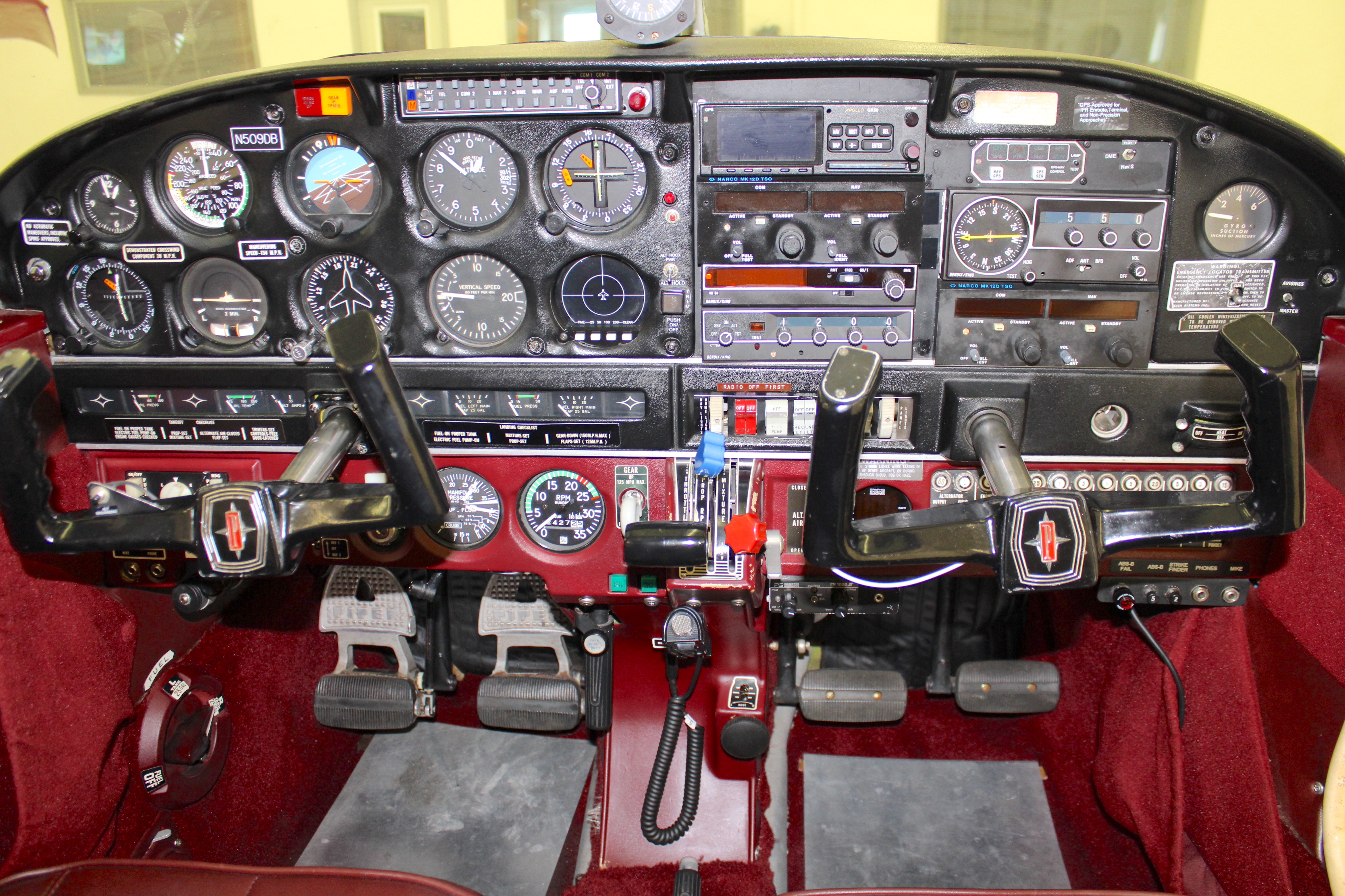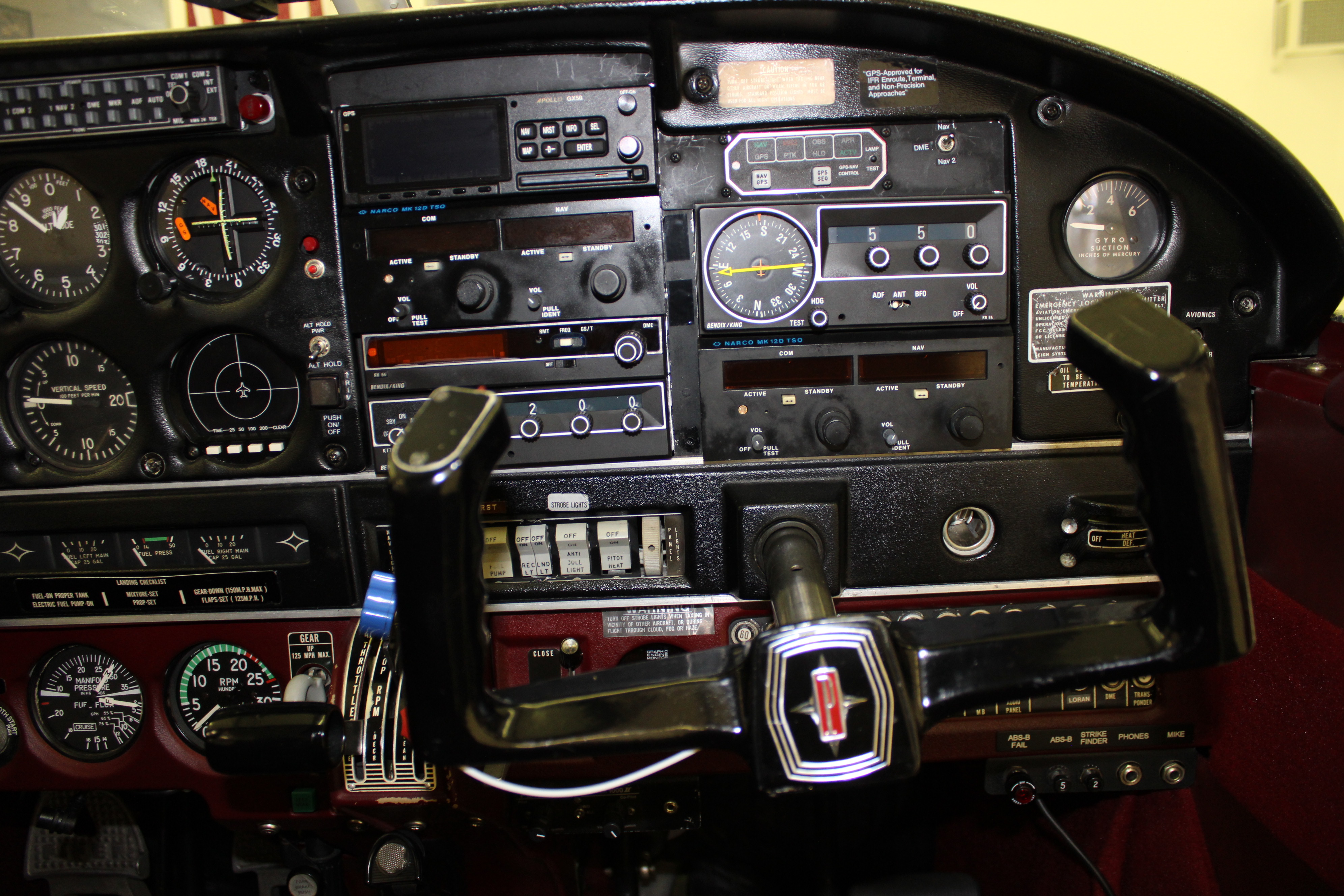 King KMA-24 Audio Panel paired with a PS Engineering PM 1000 2 Place Intercom Narco MK-12D Nav/Com 1 with Localizer and Glideslope Narco MK-12D Nav/Com 2 with Localizer Only Apollo GX-50 GPS King KN 64 DME King KT76A Transponder Garmin GDL82 ADS-B Out Piper Auto Control III with Altitude Hold King KR 86 ADF |