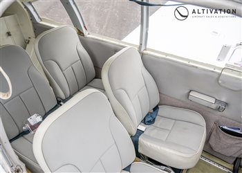 | This 1971 Piper Cherokee 180 has been hangar-kept in the dry western U.S., spending its life in Colorado and Arizona before being purchased and relocated to Sturgis, South Dakota in 2017. Panel is equipped with a a standard six pack, and an original Apollo GPS, Straus ESG transponder provides ADS-b in and out with link to your iPad for traffic and more. Panel mounted iPad holder and USB charging port keeps your iPad and flight apps at your fingertips. | |