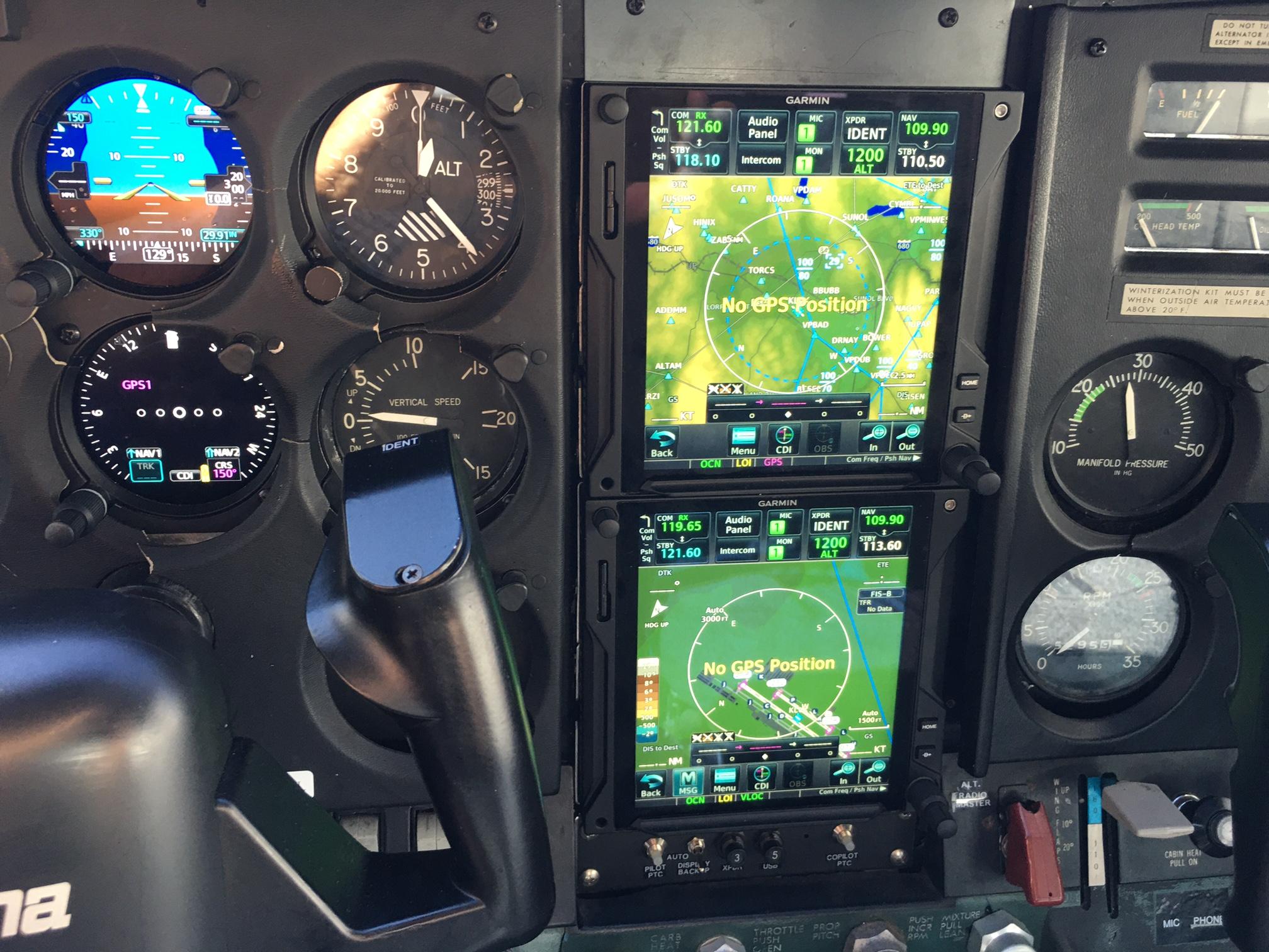 #1 Garmin 750 Color IFR Moving map GPS/Com #2 Garmin 750 Color IFR Moving map GPS/Com #1 Garmin GI 275 HSI #2 Garmin GI 275 HSI Garmin ADSB Transponder in top 750 Dual Audio panels in both 750's Dual push-to-talk buttons Avionics master switch |
