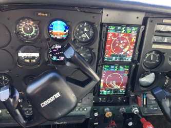 | #1 Garmin 750 Color IFR Moving map GPS/Com #2 Garmin 750 Color IFR Moving map GPS/Com #1 Garmin GI 275 HSI #2 Garmin GI 275 HSI Garmin ADSB Transponder in top 750 Dual Audio panels in both 750's Dual push-to-talk buttons Avionics master switch | |