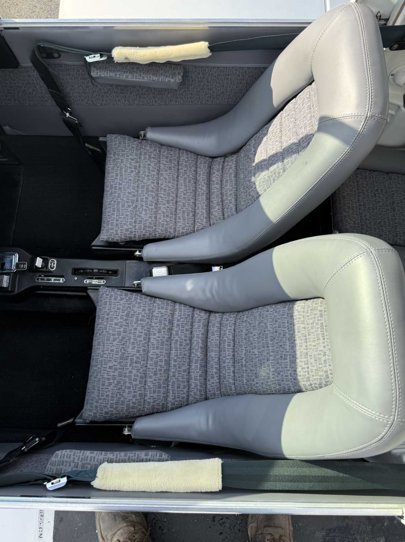 New Gray Leather and Fabric Seats Front and Rear and Side Panels by Green Mountain Aviation Black Carpet Rated “8” |