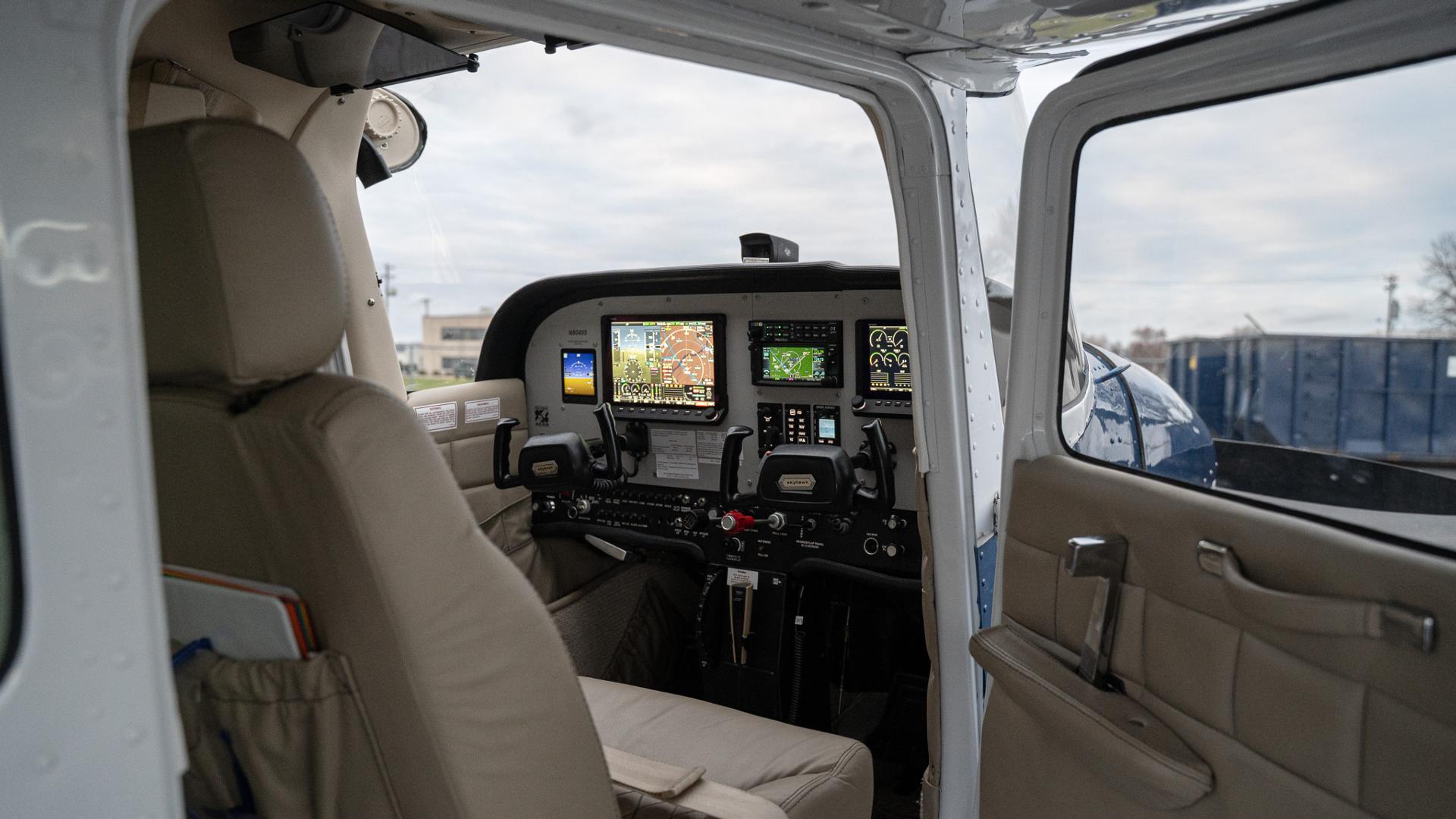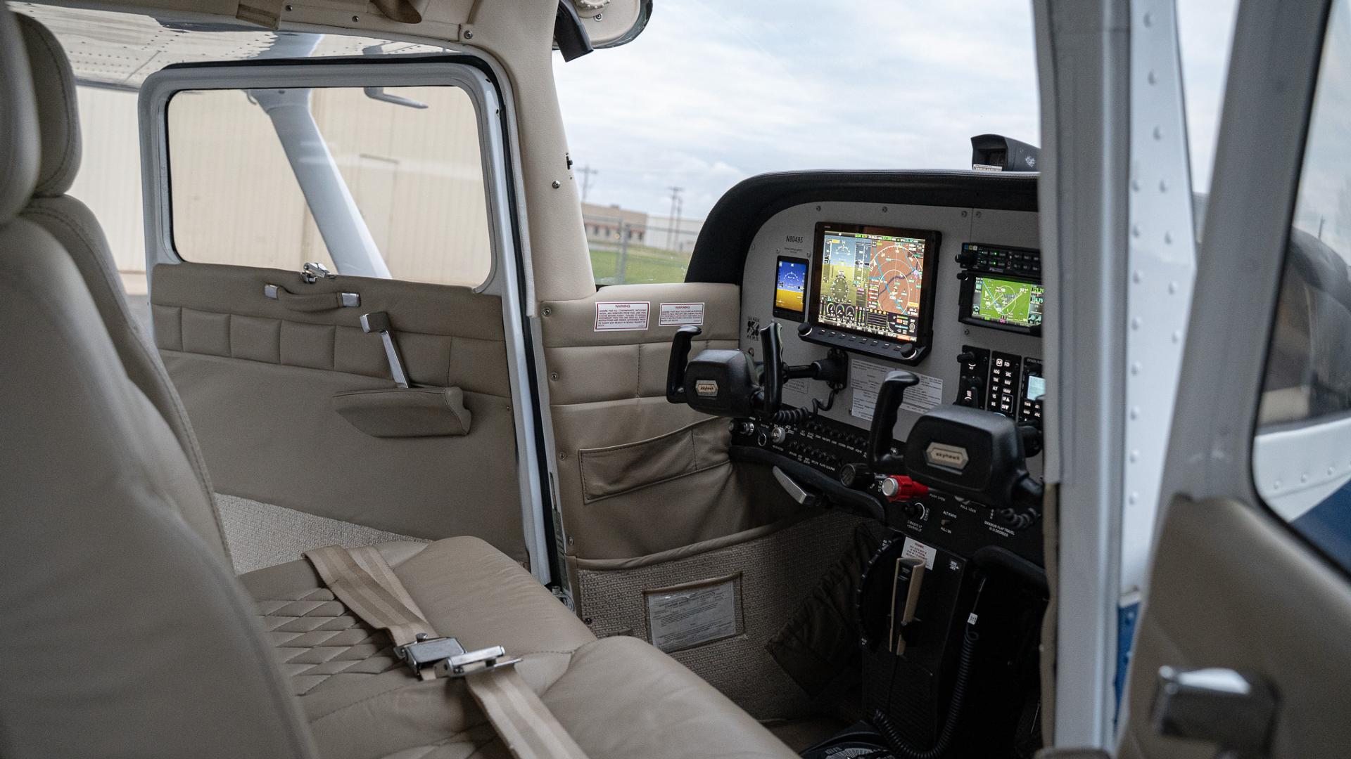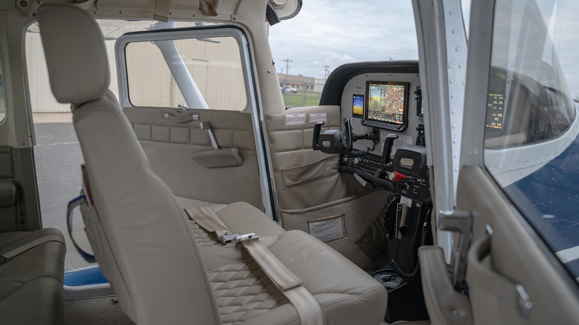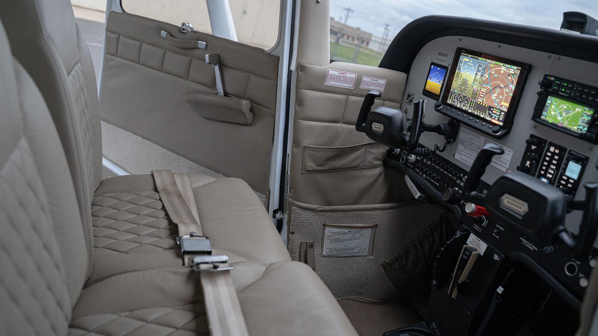 | The interior of N80495 features a freshly refurbished tan leather cabin that brings a warm, upscale feel to the aircraft. The new leather seating offers both comfort and durability, while the coordinated side panels and trim create a cohesive, modern aesthetic throughout. The updated materials brighten the cabin and provide a refined environment for pilot and passengers alike, making the interior a standout element of this upgraded 172M. | |