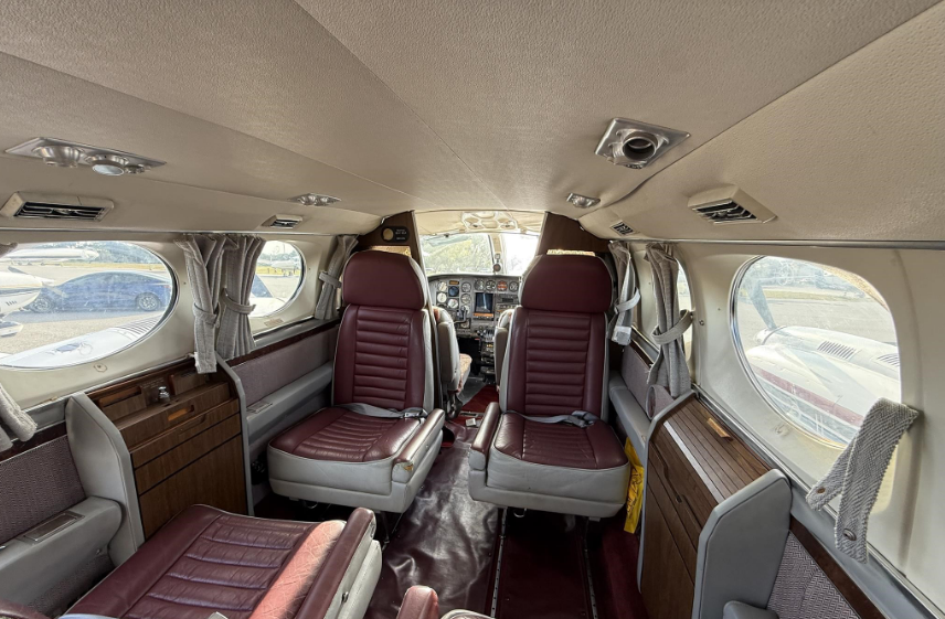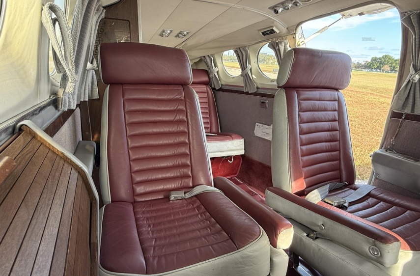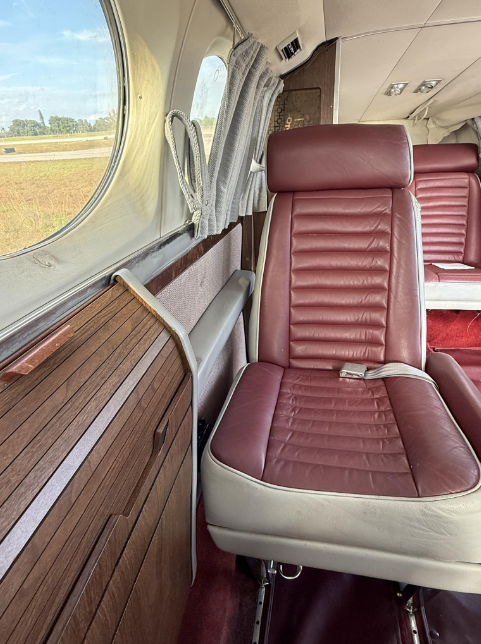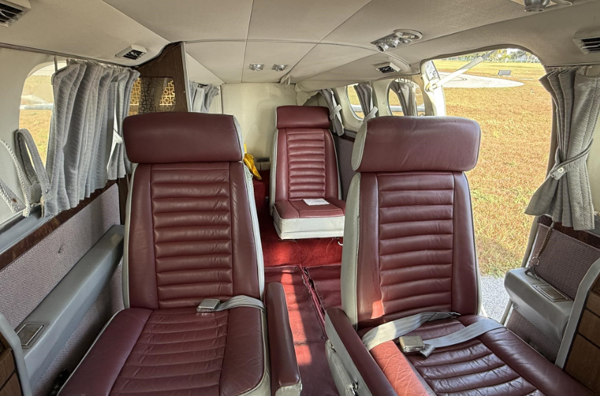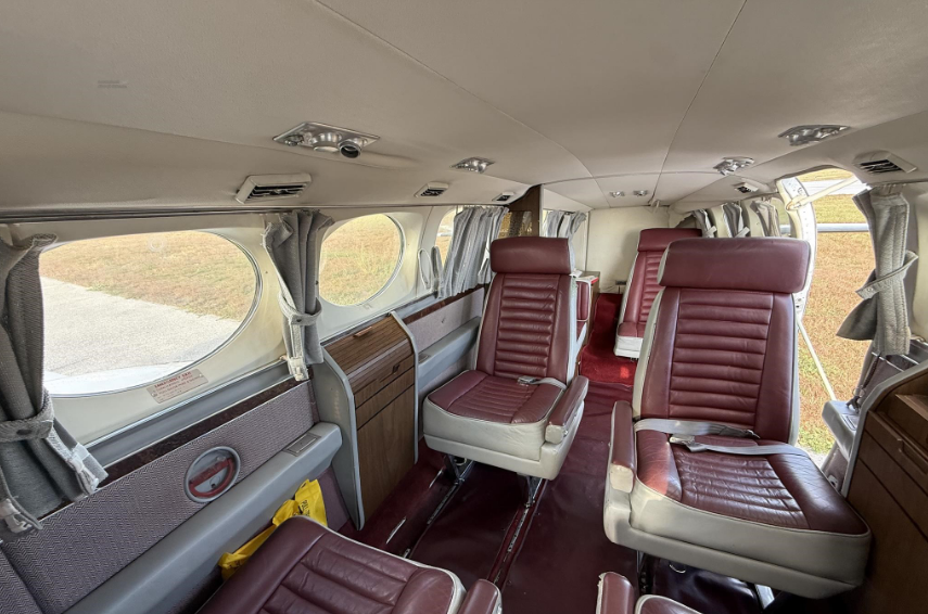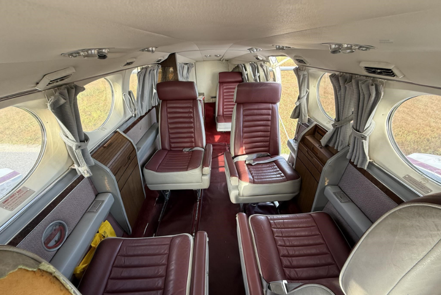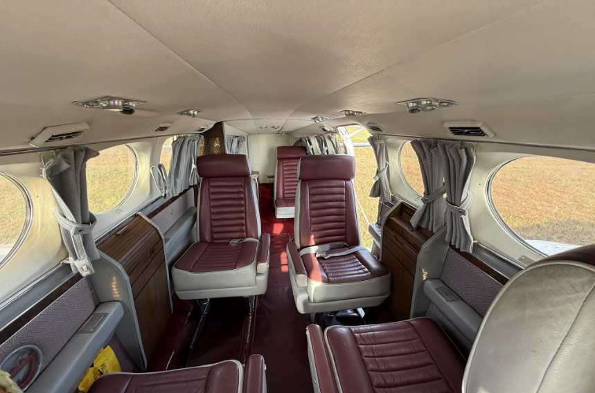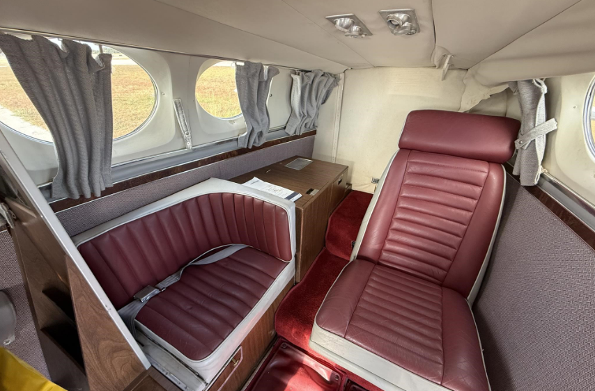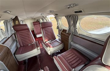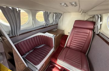 Number of Seats 8 Lavatory Yes Configuration Passenger Interior Notes Deep Red Seats and Carpet - Seats, Side Panels, Headliner, Reweb Seatbelts, Refinished Airstair door. 7-Place Seating. Headliner, Side Panels Interior shows some wear Has Executive Passenger Tables. Window Curtains. |