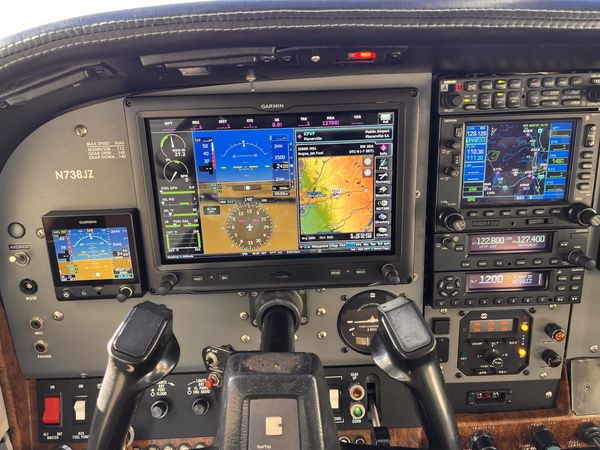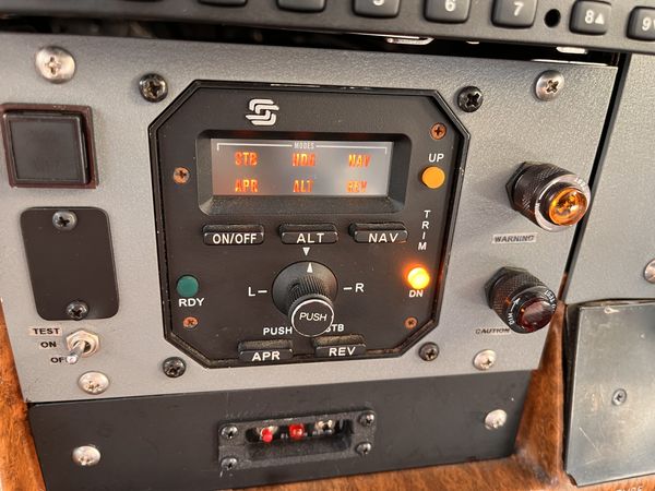 All set in a custom panel Garmin GMA 345 Audio panel with intercom Garmin G3X PFD Garmin G500 MFD Garmin G5 HSI Garmin 345 Transpomder with ADSB in and out Garmin GTR 255 digital Nav/Com Garmin 530 W color IFR moving map GPS/Com with WAAS S-Tec 60-2 fully coupled Autopilot Remote Autopilot controls on yoke Standard two plug headset interface Bose headest interface Dual 12 volt USB power outlets Avionics master switch Dual yoke mounted push-to-talk buttons Map light Remote ELT arming panel Hamilton vertical card compass Outside air temp gauge Four place intercomā |