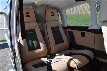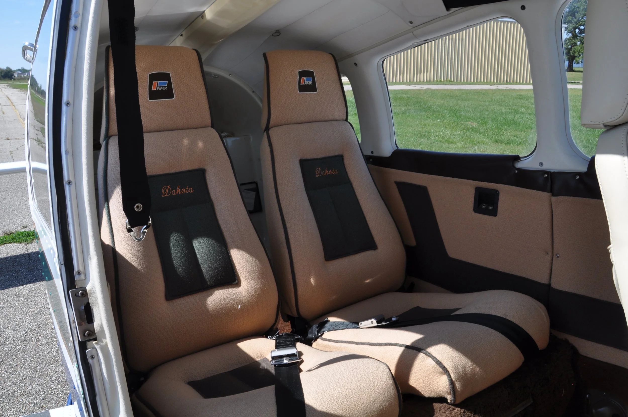Gray Pilot and Copilot Seating with Green Cloth Inserts Tan Cloth Passenger Seating with Green Cloth Inserts Brown Carpet Tan Sidewalls with Green Accents 4 Place Seating Excellent Condition Airtex Products Inc. (11/1997) |