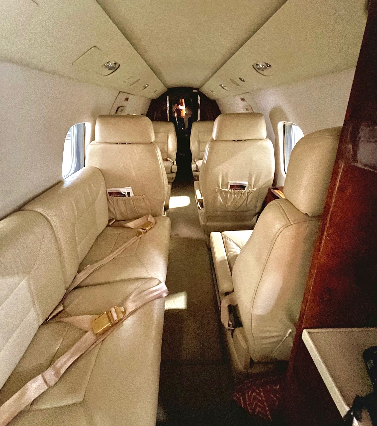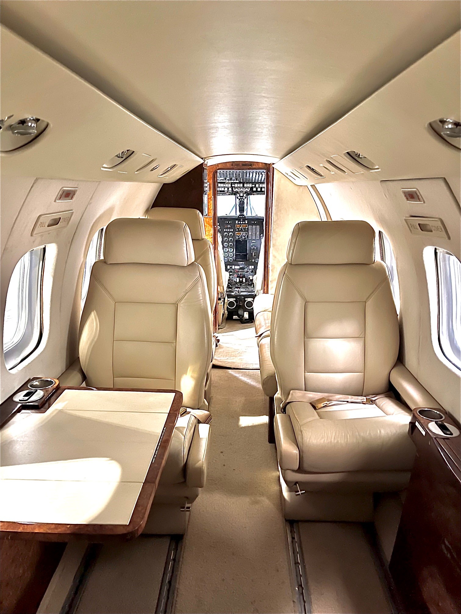 Beige Leather Interior Seating Fire blocked for Part 135 Light Ultra leather & Suede Headliner & Upper Panels Beige Wool Carpet Cherry Wood Cabinetry w/High Gloss 10.4 Inspection Status Forward LH Galley w/ Mapco Storage Drawers Overboard Drain and Warming Oven Five Executive Chairs (4 in Aft Club Arrangement) Aft Enclosed Lavatory w/ Electric Flushing Toilet and Sink |