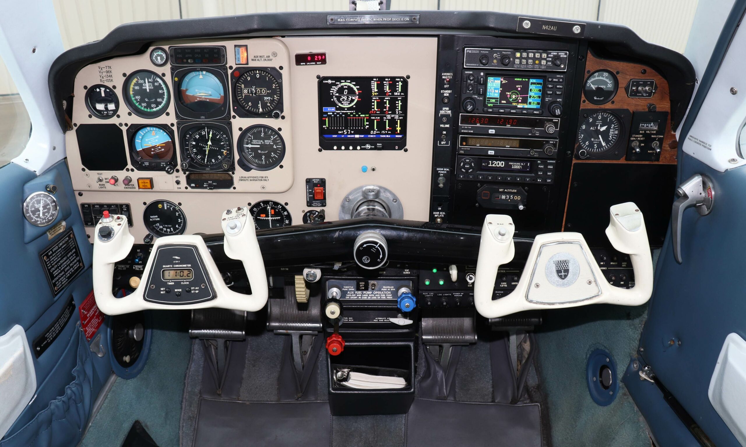 Garmin GNS430W IFR GPS/NAV/COM Garmin GTX345 ADS-B Transponder JPI EDM930 Primary Digital Engine Monitor PS Engineering PMA6000S-C Audio Panel Bendix-King KFC150 Autopilot with ALT Preselect Bendix-King KY196 COM Bendix-King KN53 NAV/VOR/GS Receiver Bendix-King KI525 Compass System with Slaved HSI Radio Altimeter AstroTech LC2 Quartz Chronometer Standby Altimeter Vertical Card Compass |
