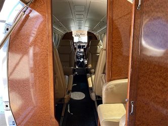 BY Aerosmith Aviation on 03/2008 Configuration/PAX: Executive/10 passengers Seating: Beige leather seating, forward aft-facing seat & side-facing 2-place divan, mid-cabin 4-place club, dual aft jumpseats Sidewalls: Beige leather side panels Carpet: New carpeting installed in 2020 Refreshment: Forward refreshment center Cabinetry/Wood: Mahogany veneer cabinetry Accessories: Forward & aft hardwood dividers, USB ports, AvFAB side-tracking seat bases Lavatory: Side-facing belted aft lav |