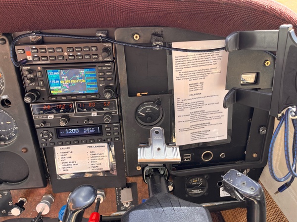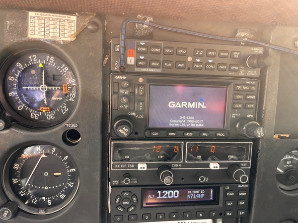 Garmin GMA 350 Audio Panel with 3LMB Garmin GNS 430 W Color IFR moving map GPS/com (WAAS) Garmin Glide slope/VOR/Localizer indicator Garmin GTX 345 Transponder with ADSB in and out King KX 155 digital flip/flop Nav/com King KI 208 VOR/Localizer indicator True airspeed indicator Avionics master switch Alcor EGT Dual push-to-talk buttons Davtron digital timer Secondary 3LMB Music input into 4 place intercom Outside air temp guage |