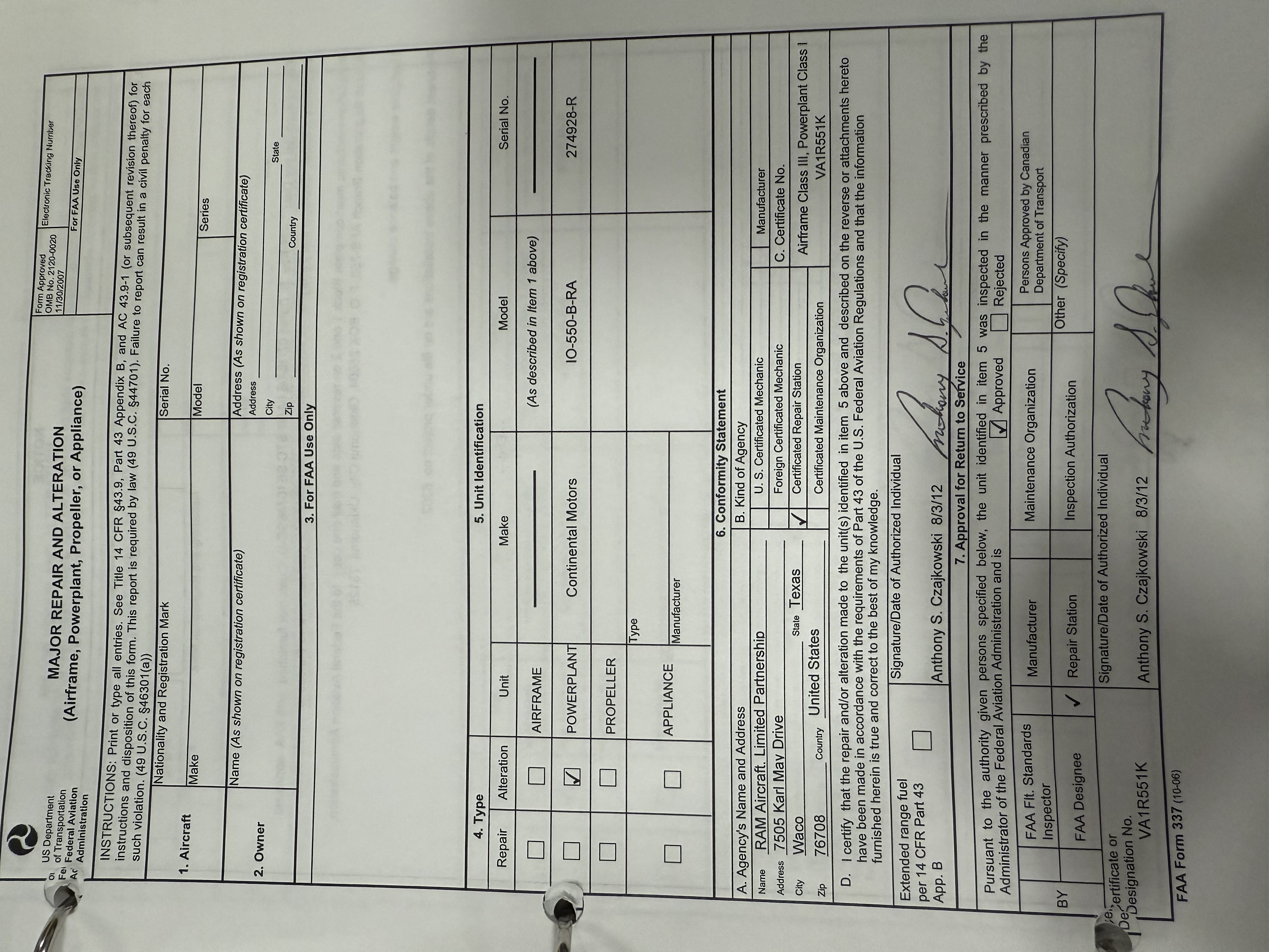RAM Continental IO-550B-RA 300 Horsepower Engine Conversion RAM Nickel Cylinders  |
