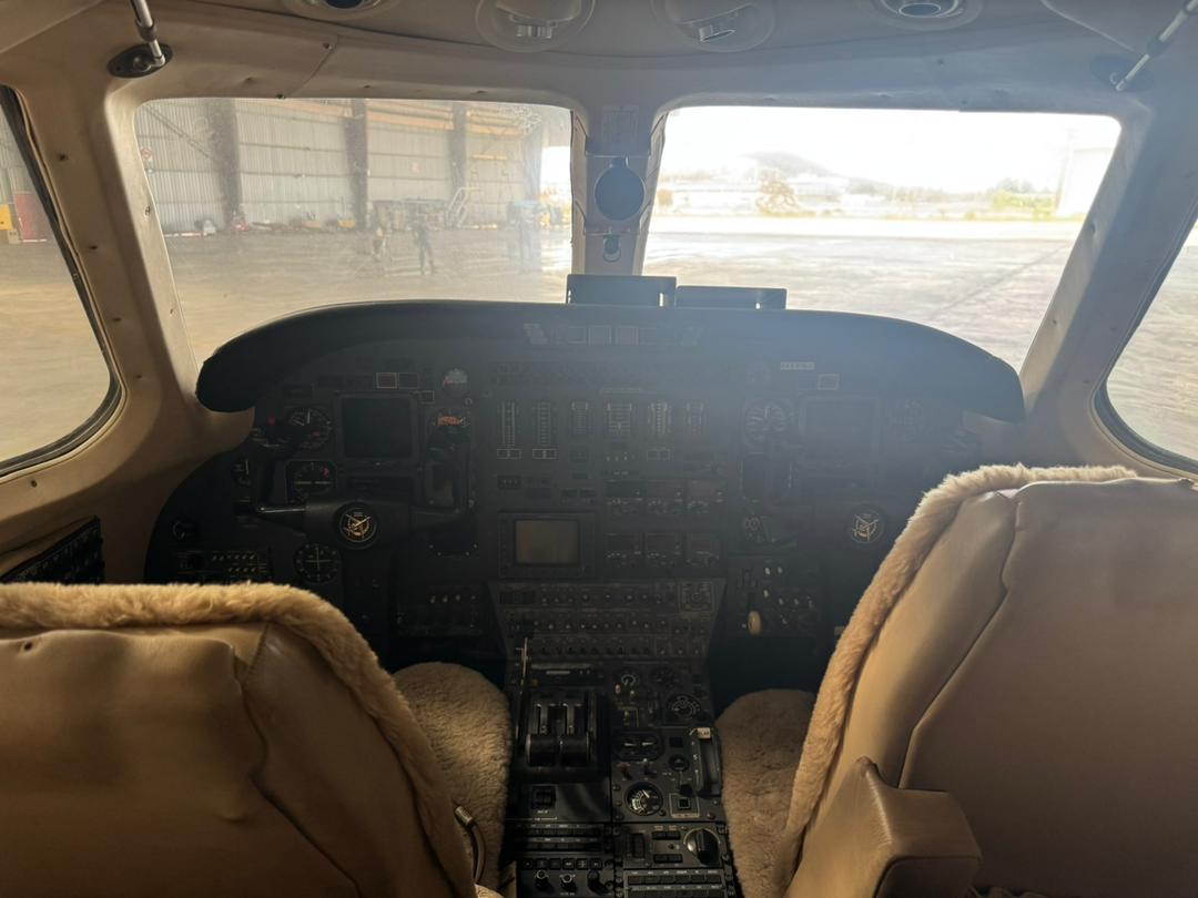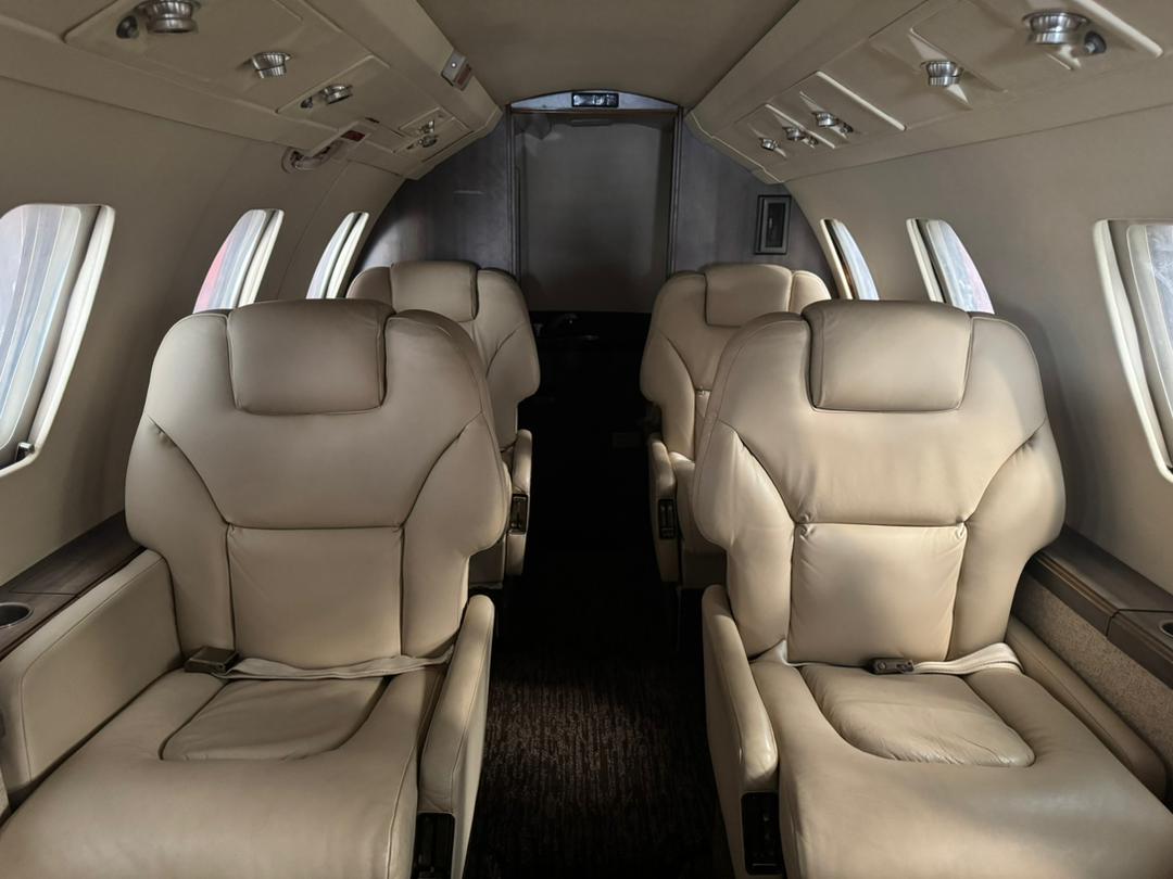Citation VII leather seats installed in a light tan color and complete with fire blocking