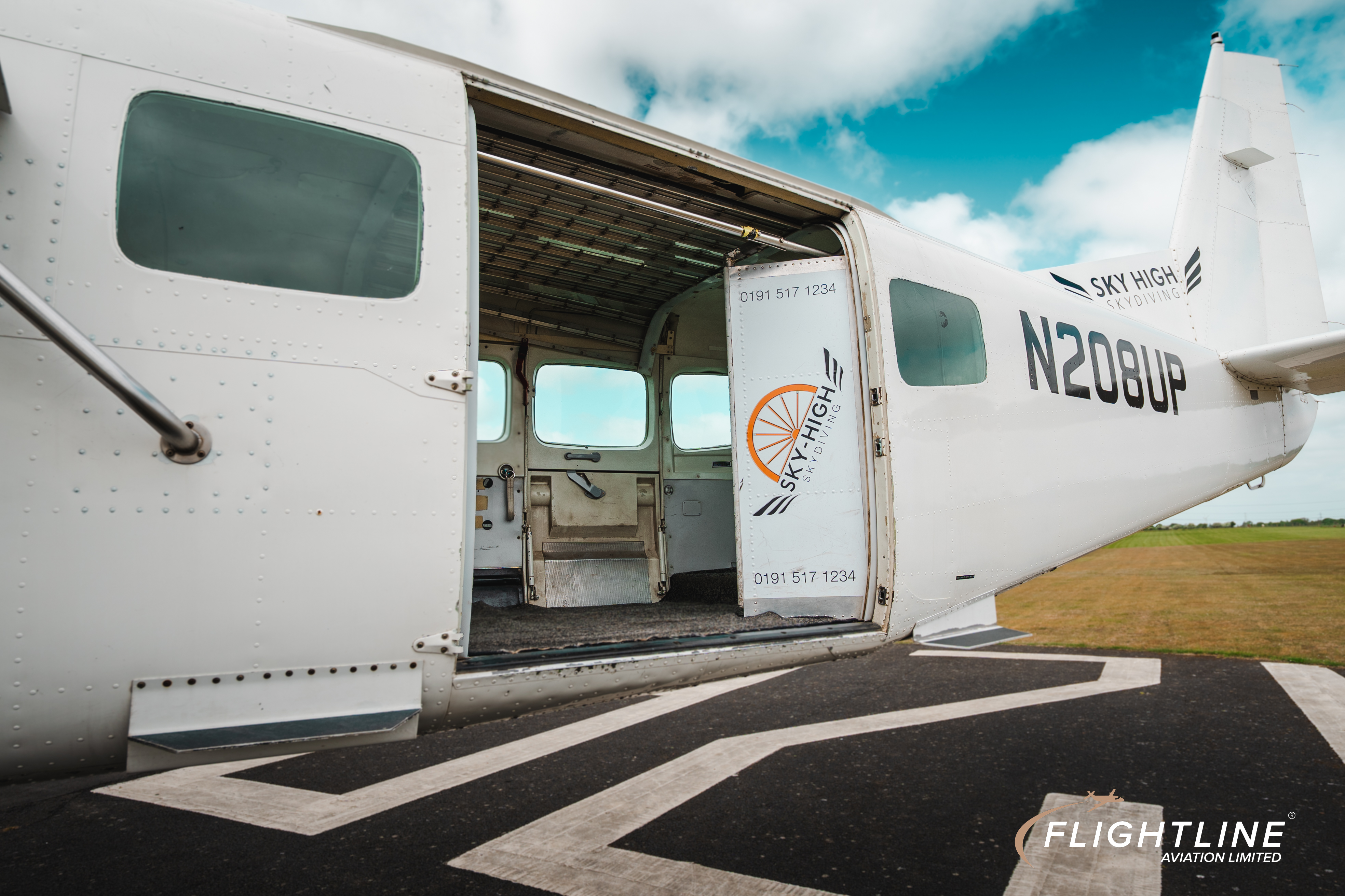 Aircraft Configured for Skydiving operations: - Rear Bench Seats - Roller Shutter Rear Door - Interior & Exterior Handrails and Steps - Jump Lighting |