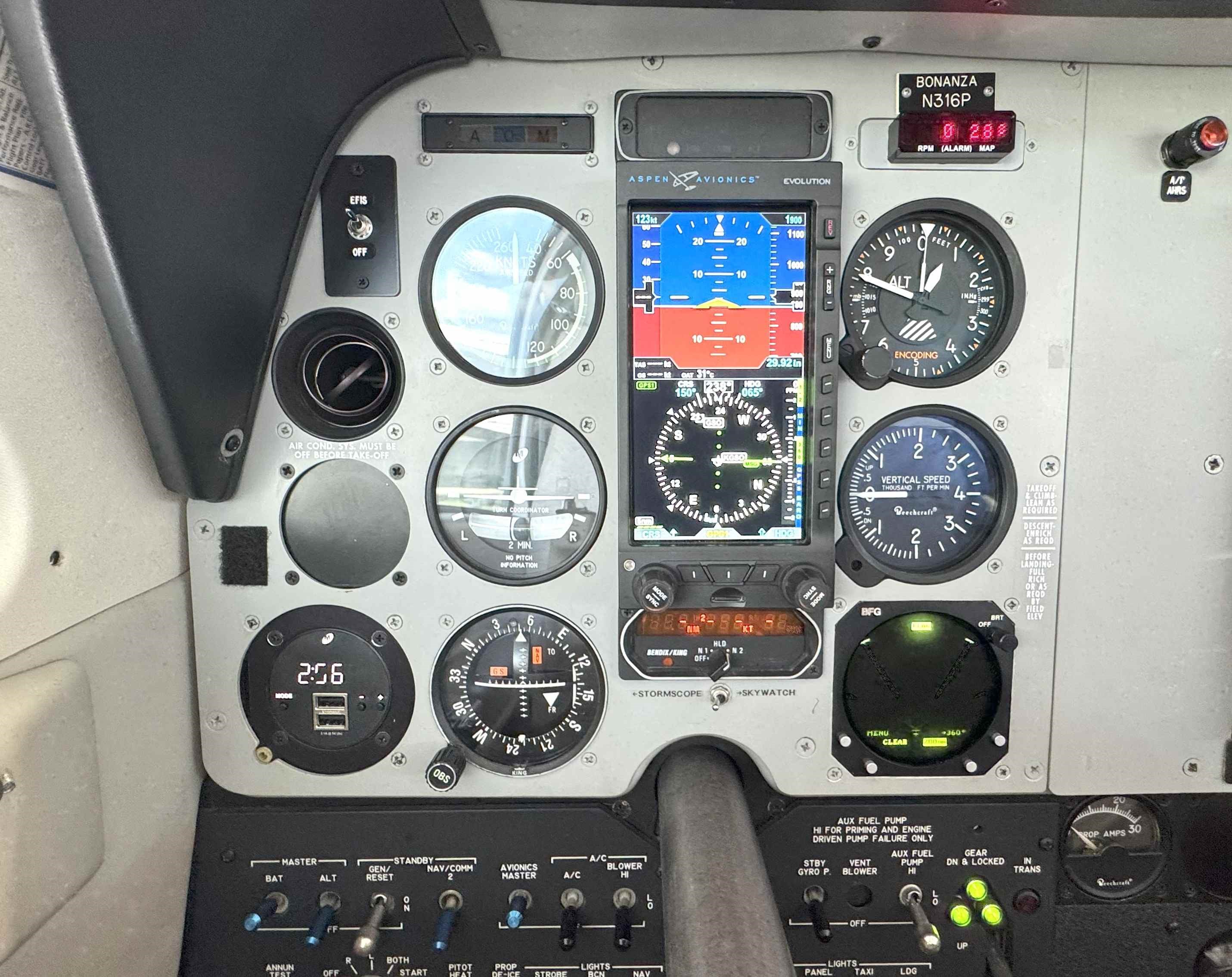 N316P 1999 A36 Bonanza, Serial No. E-3237, 1995 Total Time Since New, IO-550 300 Horsepower Engine 355 Since Major Overhaul with New Millinneum Cylinders, 3 Blade Hot Prop 355 Since Overhaul, Factory Air Conditioning, King KFC-225 Autopilot integrated to Aspen PRO Max EFIS Primary Flight Display with Synthetic Vision, Altitude and Vertical Speed Preselect and Yaw Damp. Garmin GTN-750 GPS/Nav/Com w WAAS, Garmin GNC-255 Digital Nav/Com, PS Engineering 7000B Audio Panel w 6 Place Intercom and 3 Light Marker Beacon, Garmin GTX-327 Transponder and Garmin GDL-88 ADS-B In & Out for Subscription Free Traffic and Weather, displayed on GTN-750, BFG 497 Skywatch Active Traffic, Flight Stream 510, Vertical Card Compass, Jeppessen Chart View, WX-1000 Stormscope Weather Avoidance System, King KN-63 DME with DME Hold and Nav 1 & 2, JPI EDM-930 Graphic Engine Display with Fuel Totalizer, Standby Airspeed, Altimeter, VSI and Turn Co-Ordinator, USB Ports with Digital Clock On Panel, Bose Lemo Plugs Pilot & Copilot, Co-Pilot Brakes, G&D Tinted Window Inserts, Engine Pre-Heat System, 3 Light Strobe System, LED Landing and Taxi Lights, Reversible Club Seating, Executive Writing Desk, External Power Receptacle, Approach Flaps, Electric Elevator Trim, Aft Baggage Compartment, Alternate Static Air, Co-Pilot Brakes, Control Wheel Map Lights, Shoulder Harnesses All Seats, Factory Internal Corrosion Proofing, Excellent Paint and leather Interior, No Damage History, Wing Spar AD Does Not Apply, Complete Logbooks, plus Plane Logix System, $499,000 with Bonanza School.