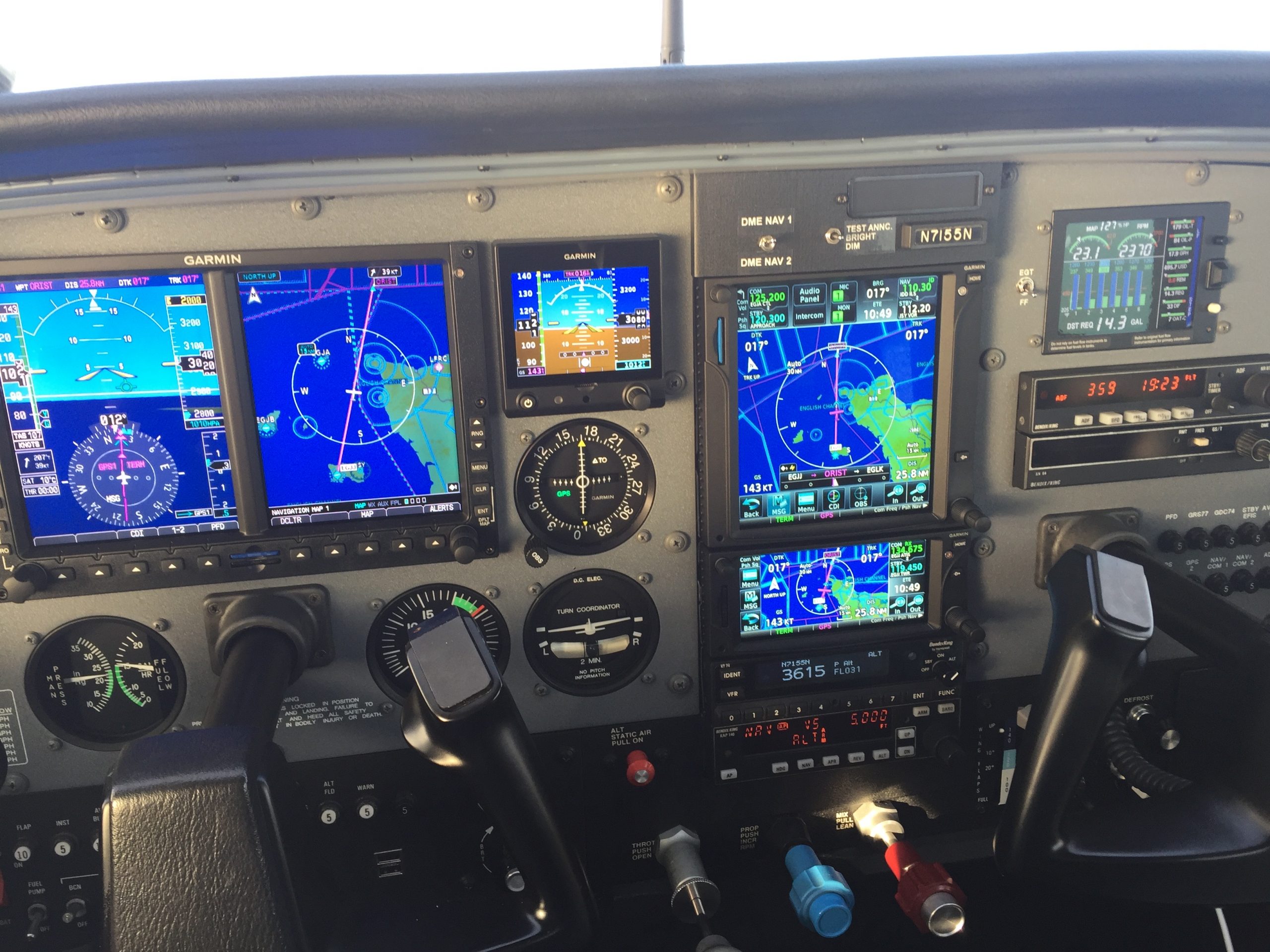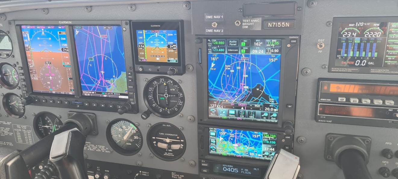 Garmin G500 SVT Garmin GTN750 Garmin GTN650 Garmin G5 WX500 Weather SKY497 TAS Flightstream 510 King KT70 Mode S Transponder KI209A VOR/LOC/GS Indicator with GPS Interface KI120B VOR/LOC KR87 ADF KAP140 Autopilot |