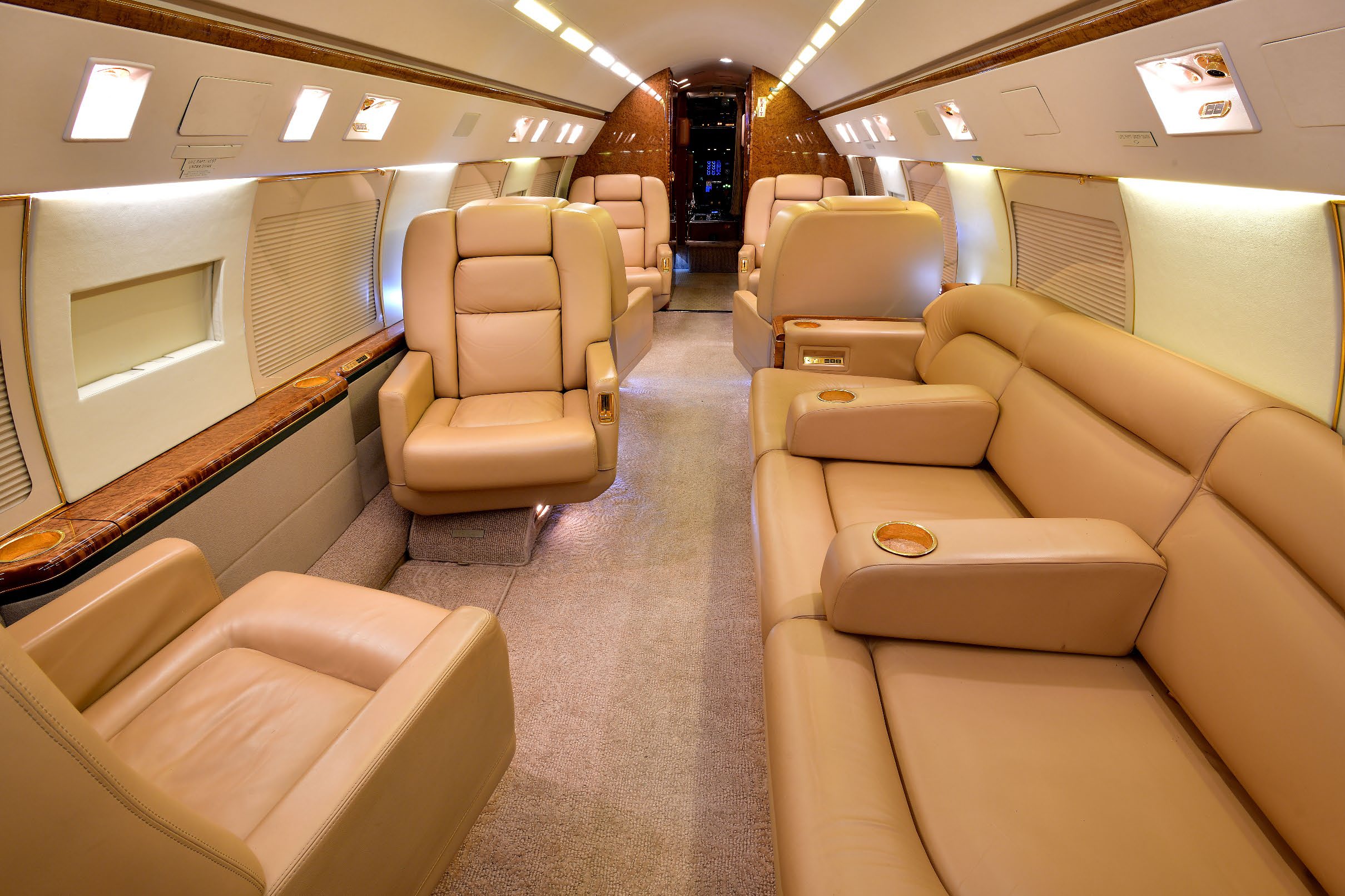 Communications and Entertainment Avance L5 WiFi Magnastar C-2000 In-Flight Phone Airshow 400 Six Rosen 5.6” Cabin Swing Out Monitors One 14.2” Pop-Out LCD Above Credenza Monitor One 10.4” Pop-Out LCD in Divan Armrest Monitor |