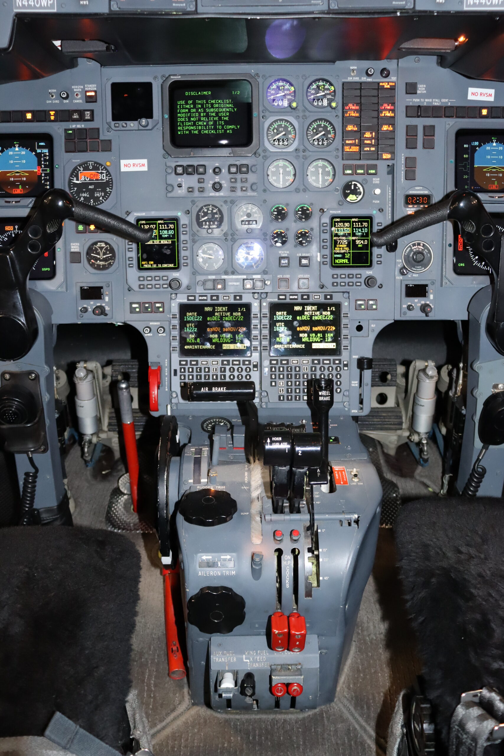 Avionics Suite: Honeywell Primus II ADF: Dual Honeywell RNZ-850 AP/FD: Dual Honeywell DFZ-800 COMM: Universal CVR-30B CVR: Dual Honeywell RCZ-833 DATALOADER: Honeywell DL-900 DME: Dual Honeywell DM-850 FMS: Dual Honeywell NZ-2000 (SW v6.0) EFIS: Five Tube Honeywell Displays GPS: Dual Honeywell HG2021GD06 HF: Dual King KHF-950 w/ SELCAL NAV: Dual Honeywell RNZ-850 Radar: Honeywell WU-880 RMU: Dual Honeywell RM-855 Traffic Avoidance: Honeywell TCAS 2000 w/ Change 7.0 Transponder: Honeywell Mark VII Enhanced EGPWS Terrain Avoidance: Dual Honeywell RCZ-833 Stormscope: Honeywell LSZ-860 |