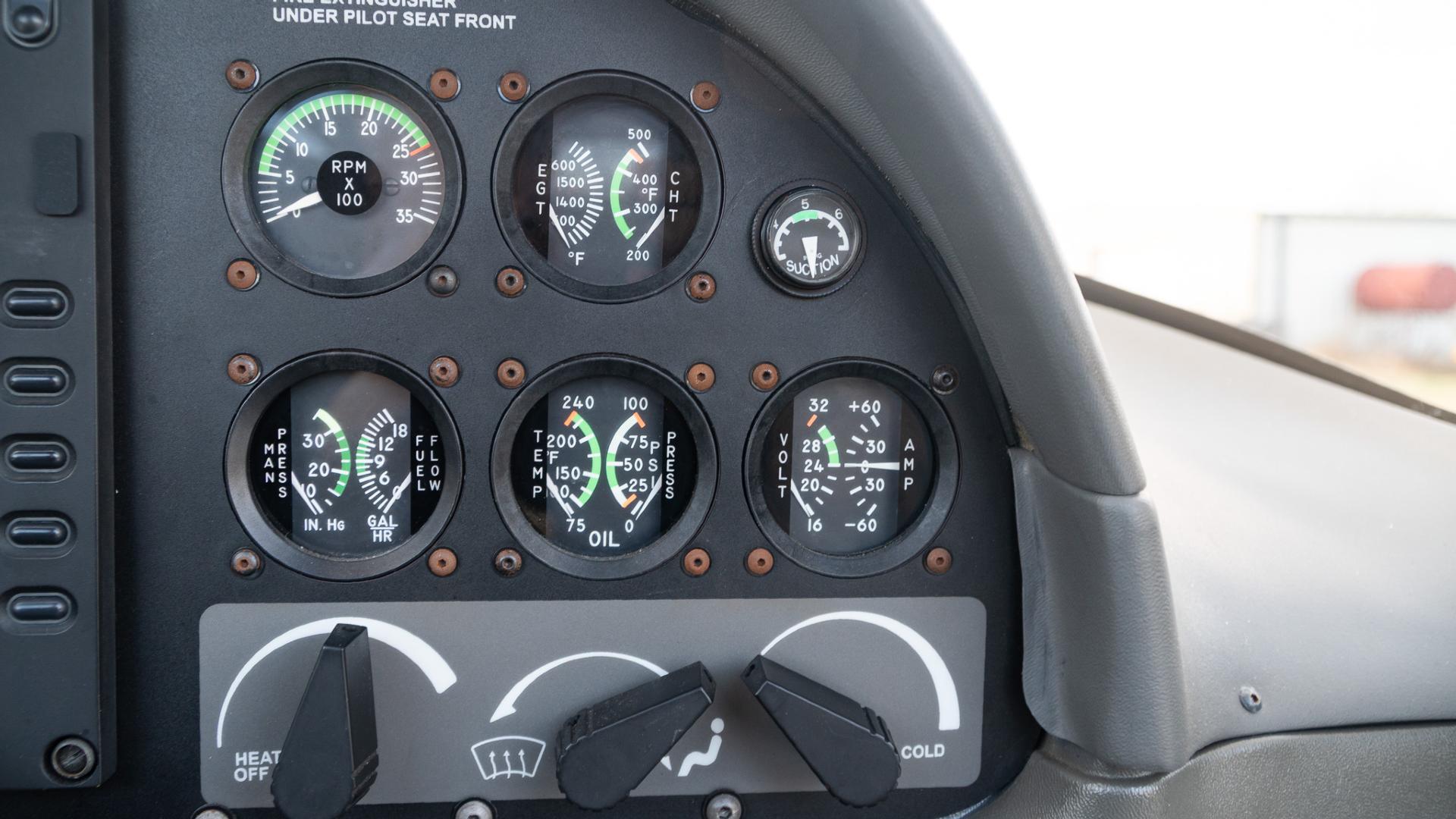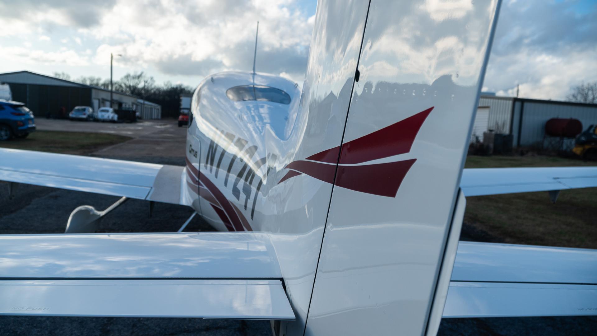 Original white paint with maroon and silver vinyl trim are all in great condition. The aircraft has been hangar stored and shows very well.