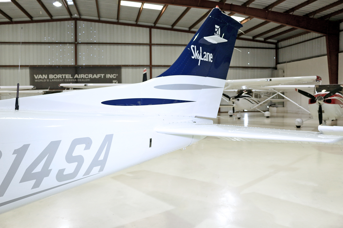 | Matterhorn White with Fed Ex Gray and Arista Blue Stripes; Arista Blue Tail, Cowling and Wingtips | |