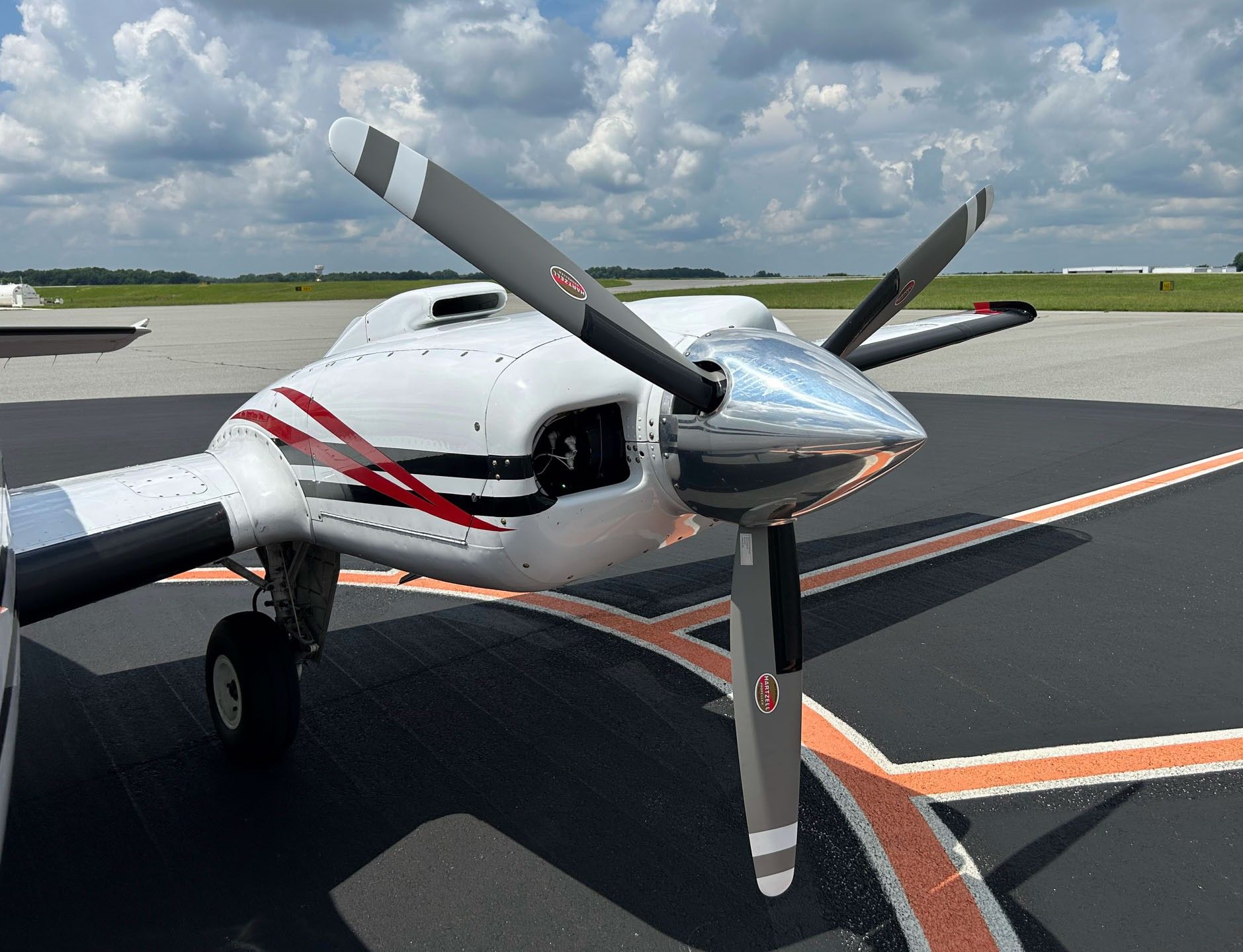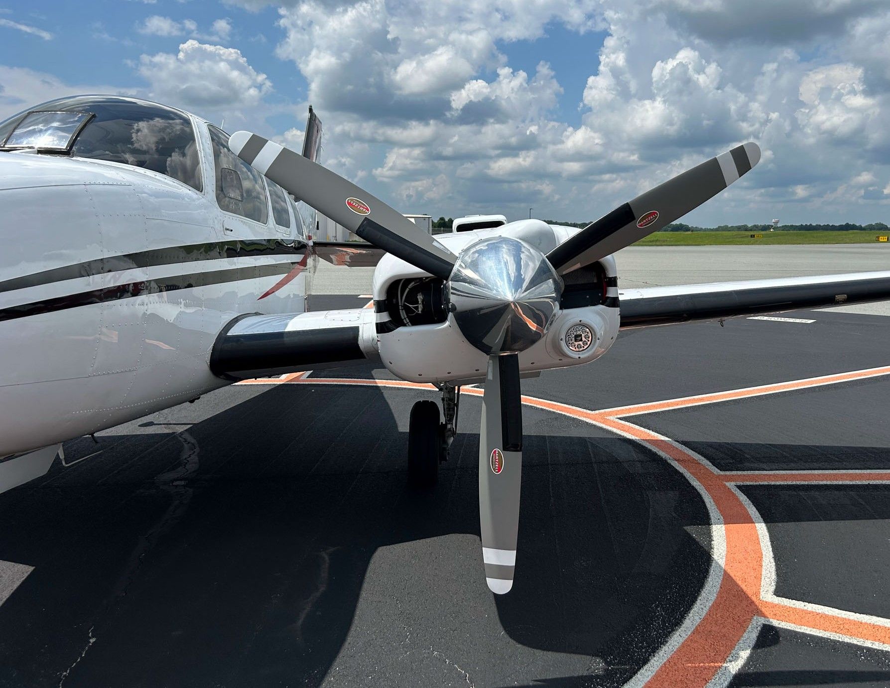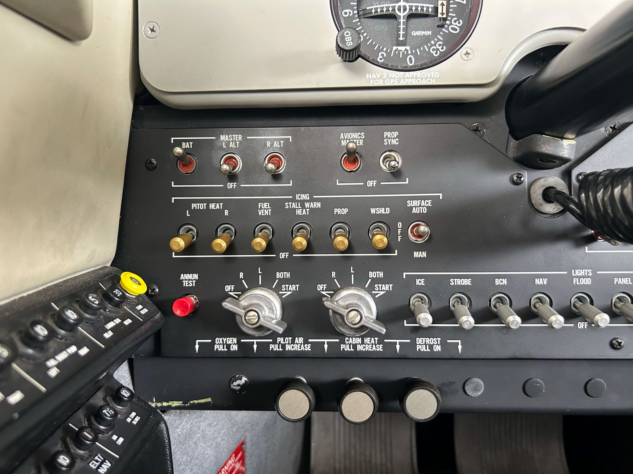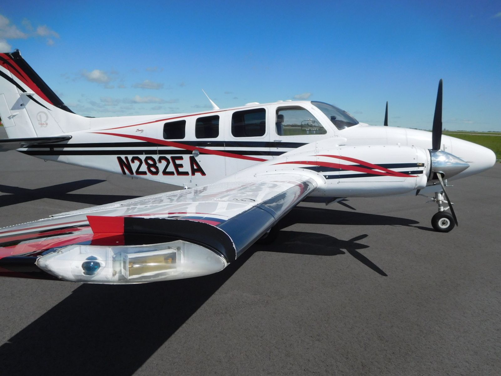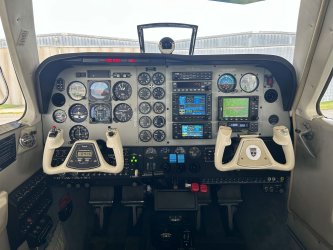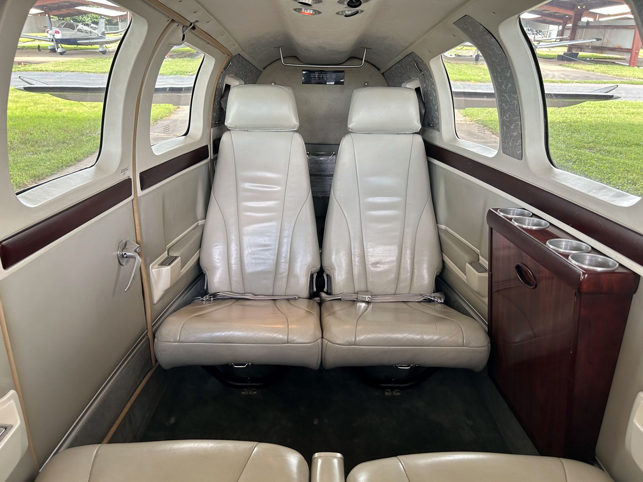 Prop Sync Rosen Sunvisors Brackett Air Filters Heavy Duty Brakes Factory Air Conditioning Pilot & CoPilot Vent Windows LED Landing Lights Control Wheel Clock Pilot Releif Tube Control Wheel Map Lights Super Sound Proofing 194 Gallons Long Range Fuel External Power Receptacle Strobe Lights - 3 Light System Club Seating-6 Seats Executive Writing Desk Vertically Adj Pilot and Co-pilot Seats 6 Overhauled Cylinders (nickel) in Box Co-Pilot Brakes Battery Minder Plug Upgraded Heater (Inconel liner) True Airspeed Indicator Known Ice Certified Upgraded Fuel Drains Executive Writing Desk Three Blade Hot Props Alternate Static Air System 6-Place Intercom System ATC Clearance Replay Switch Instantaneious Vertical Speed Ind Prop Unfeathering Accumulators Streamline Oscillating Beacons Entrance Door Courtesy Lights D'Shannon D-200 Engine Baffles D'Shannon Speed Sloped Windshield D'Shannon Speed Sloped Side Windows |