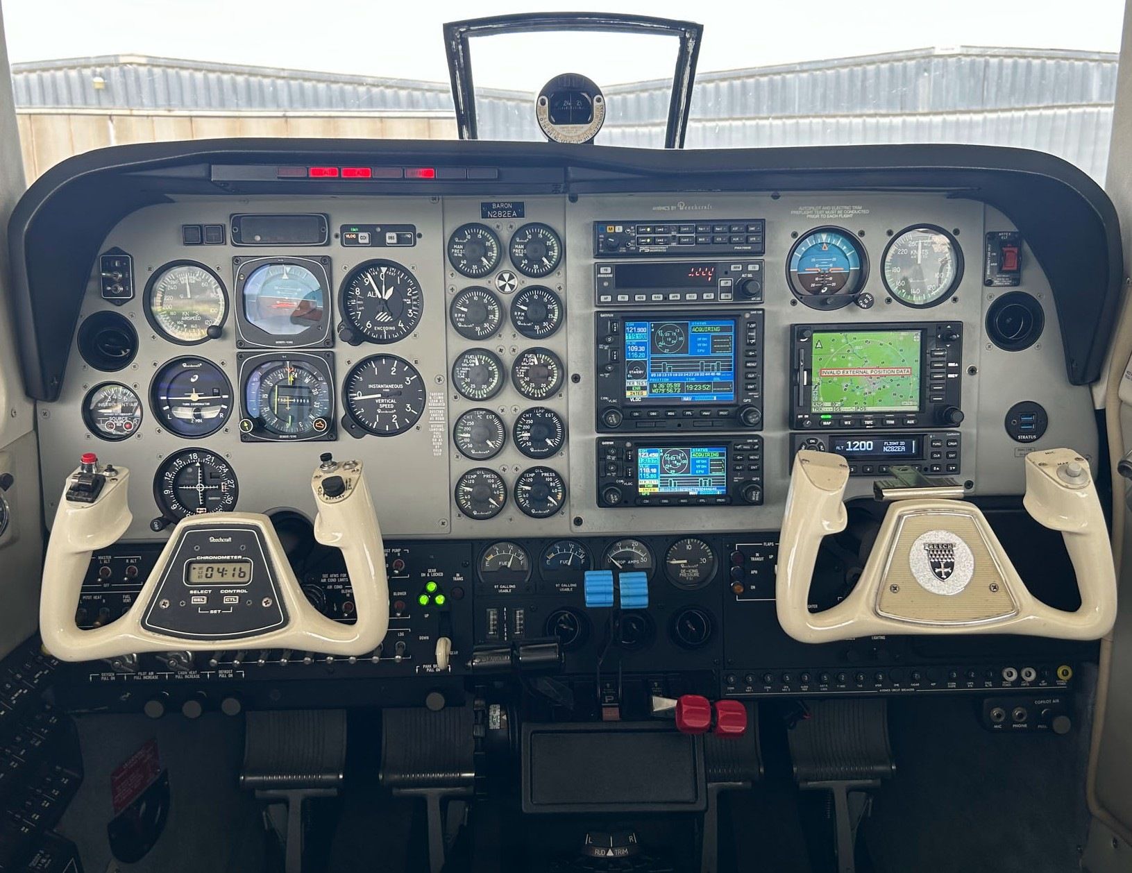 | N282EA 2004 Baron 58, Serial No. TH-2082, 6005 Total Time Since New, IO-550 300 Horsepower Engines, Left Engine 18 Since RAM Major Overhaul, Right Engine 783 Since Major Overhaul, (Aircraft Comes with a Box Set of Six Overhauled (Nichel) Cylinders for A Future Top Overhaul) Left Prop 18 Since Overhaul, Right Prop 783 Since Overhaul, Factory Air Conditioning, Certified for Flight Into Known Ice, 194 Gallons Usable Fuel, King KFC-225 Autopilot / Flight Director / Slaved HSI with Altitude and Vertical Speed PreSelect and Yaw Damp, Garmin GNS-530W GPS/Nav/Com with WAAS, Garmin GNS-430W GPS/Nav/Com with WAAS, PMA-7000B Audio Panel with Marker Beacons and Built-In 6 Place Intercom System, King KMD-850 Multi-Function, Traffic and Weather Display, RDR-2000VP Vertical Profile Color Radar, WX-500 Stormscope, Skywatch Active Traffic, Garmin GDL-69A XM Weather and Music, Garmin GTX-345 Transponder with Subscription Free ADS-B Traffic and Weather, D'Shannon D200 Engine Baffles, D'Shannon Speed Slope Windshield with Hot Plate, D'Shannon Side Windows, Prop Sync, Rosen Sun Visors, Co-Pilot Brakes, Heavy Duty Brakes, Upgraded Heater with Inconel Liner, Upgraded Fuel Drains, Reversible Club Seating with Executive Writing Desk, De-Ice Boots, Three Blade Hot Props, Pilot and Co-Pilot Cabin Vent Windows, Control Wheel Clock, Pilot Relief Tube, Control Wheel Map Lights, Super Sound Proofing, External Power Receptacle, Strobe Lights - 3 Light System, LED Landing Lights, Streamline Oscillating Beacon, Entrance Door Courtesy Lights, Vertically Adjustable Pilot and Co-Pilot Seats, Battery Minder Plug, Alternate Static Air, ATC Clearance Replay Switch, Instantaneous Vertical Speed Indicator, True Airspeed Indicator, Part 135 Maintenance, Original and Complete Logbooks, Always Hangared, No Damage History, Two Owners Since New, Excellent Paint $670,000 with Baron School | |