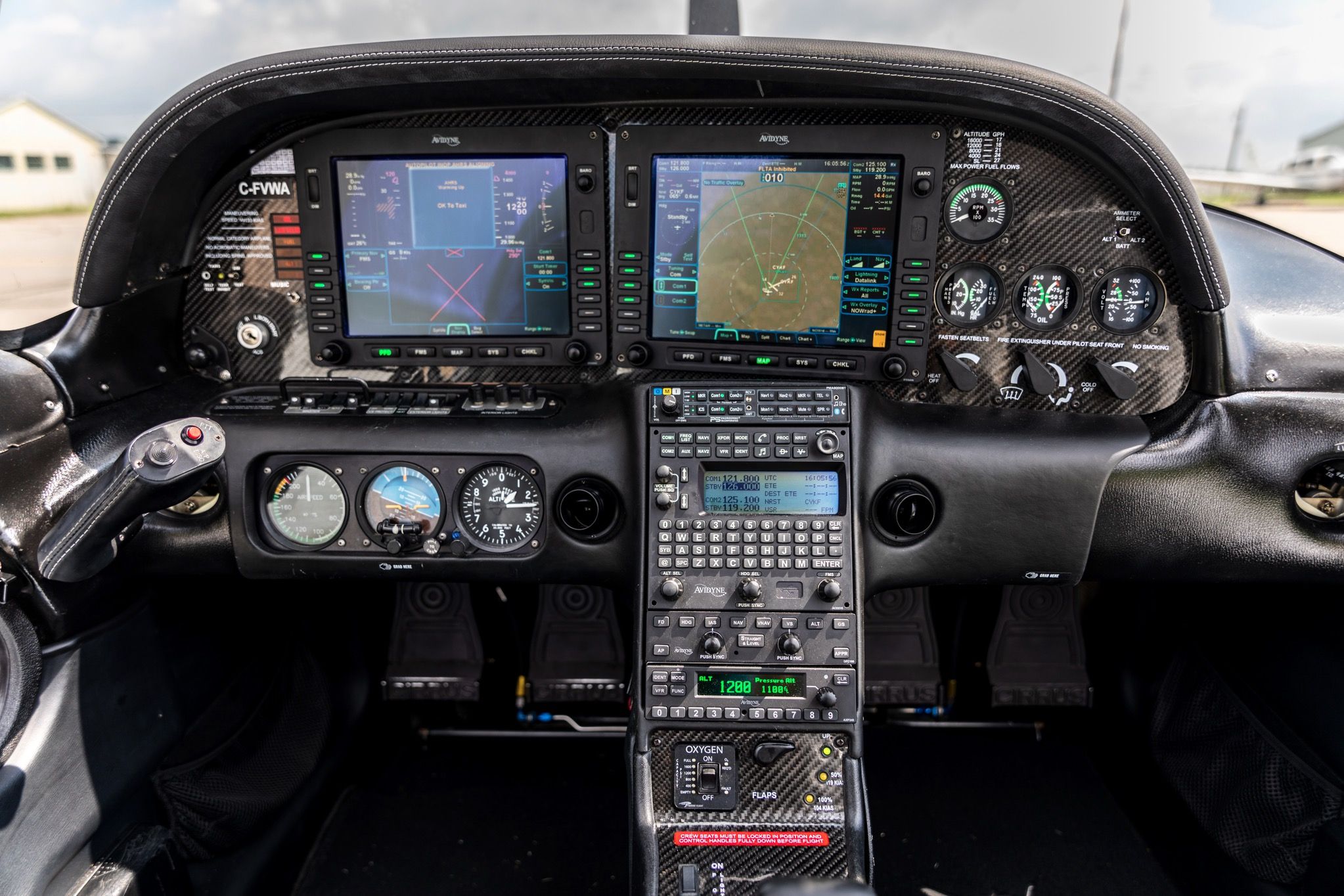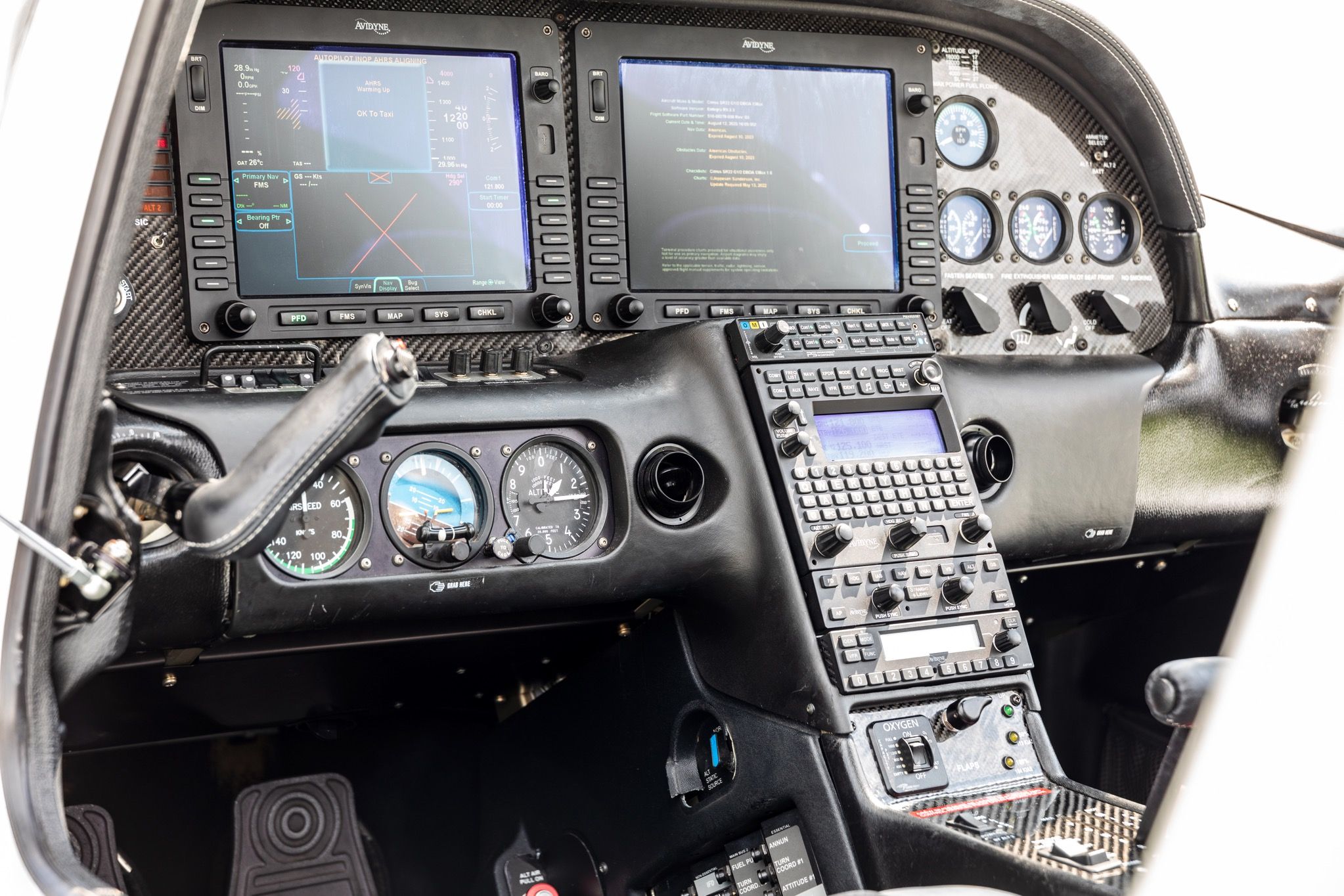 | Avidyne Platinum R9 Avionics Suite Dual XGA IFD5000 Displays Dual Redundant FMS900w Systems Dual WAAS/RNP - Capable GPS Receivers Next Generation Fully-Digital VHF NAV/COM Radios Dual ADAHRS QWERTY FMS Keyboard SynVis Synthetic Vision Engine & Fuel Monitoring (EMax) Electronic Approach Charts (CMax) Sirius Satellite Weather and Audio L3 Skywatch Traffic Information WX500 Stormscope Lightning Detection System PS Engineering PMA-8000BT Audio Panel DFC100 Autopilot with “Straight & Level” Button Avidyne AXP 340 ADS-B Out Transponder | |
