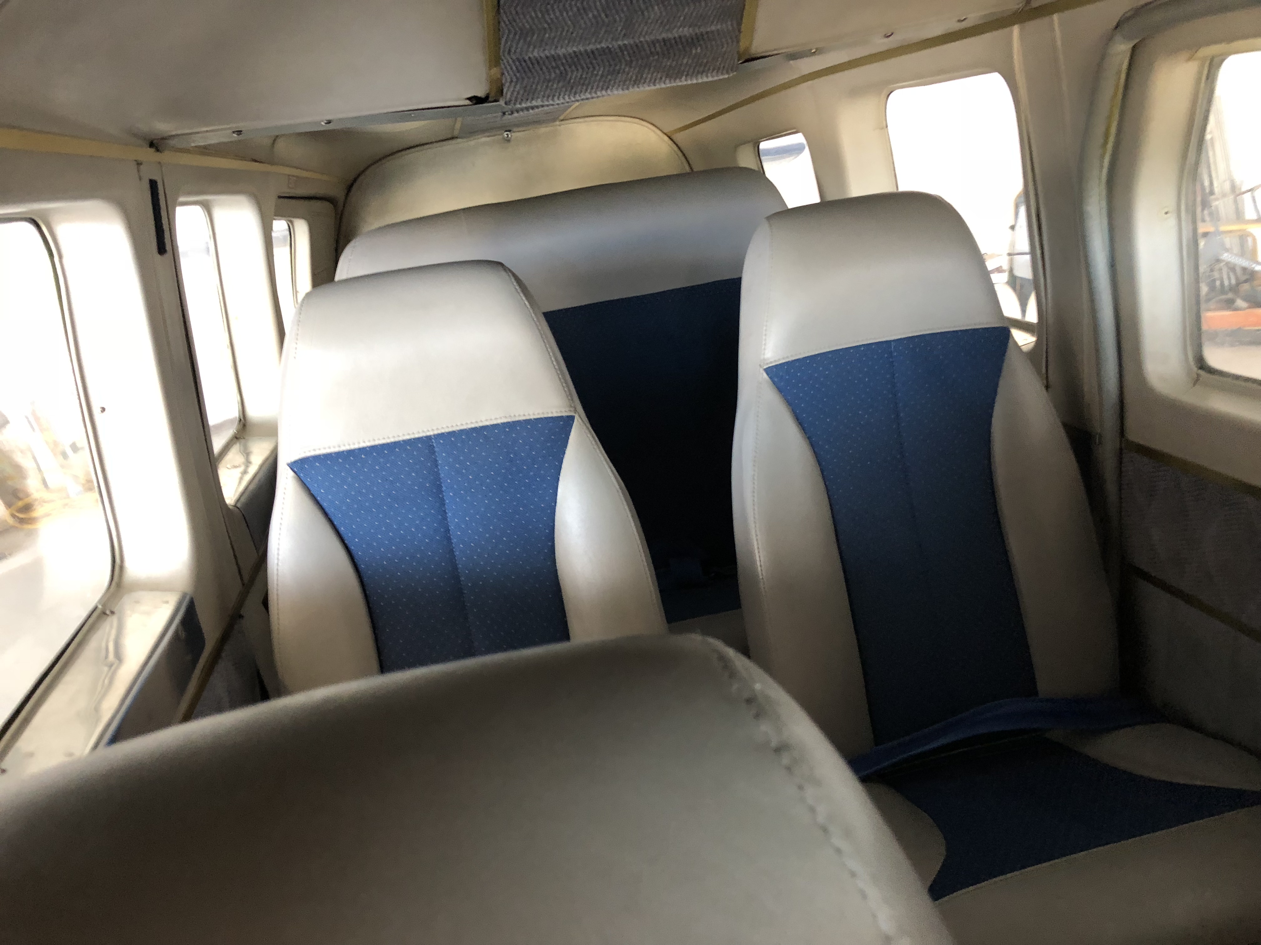 | Factory Original Creme and Blue Motif. Utility interior with 6 forward facing seats. Aft 2 seats are a bench.. Crew seats show wear and would benefit from recover. Aft 4 seats in above average condition. Navy Carpet showing wear in cockpit area. Headliner showing wear. Overall condition 5.5 on 10 scale. With front two seats recovered the interior would rate solid 7 to 7.5 on 10 scale. | |