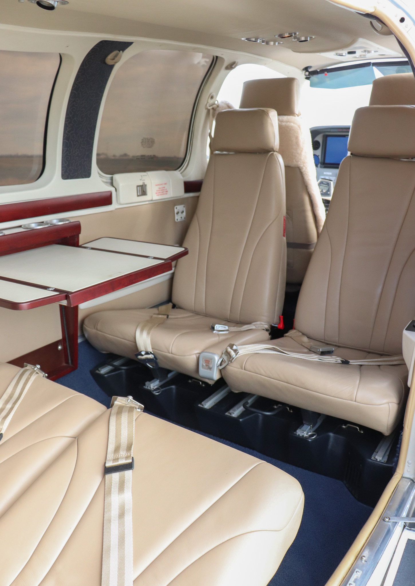 Factory Air Conditioning Standby Alternator Bose Headset Jacks – Front Seats Rosen Sun Visors Tinted Windows Sheepskin Covers on Front Seats Aithre CO Detector Appareo Stratus USB Charging Ports – Front and Rear Executive Writing Table LED Landing Light LED Taxi Light LED Wingtip Strobes LED NAV & Position Lights LED Flashing Beacon Autopilot Quick Disconnect Switch on Yoke Ident Button on Yoke Audio Replay Electric Pitch Trim Aileron Trim Overhead Air Vents & Reading Lamps Hobbs Meter Dual Toe Brakes Dual Push-to-Talk Switches Digital Chronometer in Yoke |