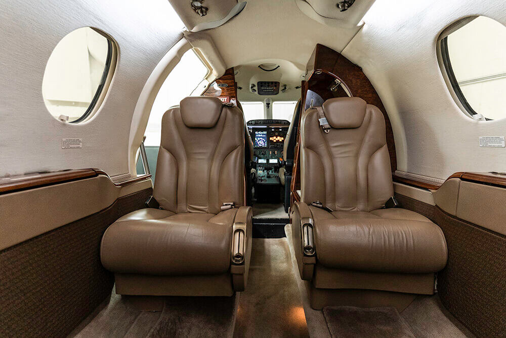 Six passenger executive configuration Tan Leather Seating with taupe carpet |