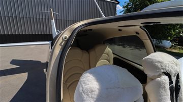 | The interior is appointed in beige premium leather, offering a warm and inviting cabin atmosphere. The seats show minimal wear, reflecting careful use and consistent maintenance, while the soft leather remains supple and comfortable for long flights. Matching side panels and trim create a cohesive, elegant look, complemented by high-quality stitching and tasteful detailing. The light beige tones brighten the cabin, providing a spacious feel, while the overall condition demonstrates the care and attention this aircraft has received throughout its life. | |||||||||