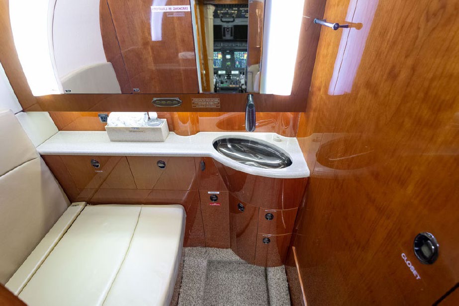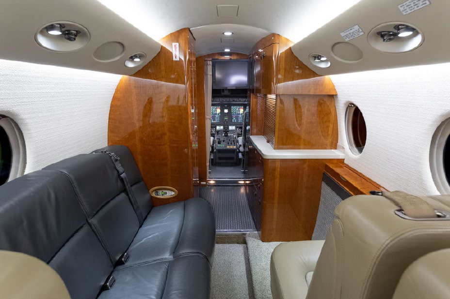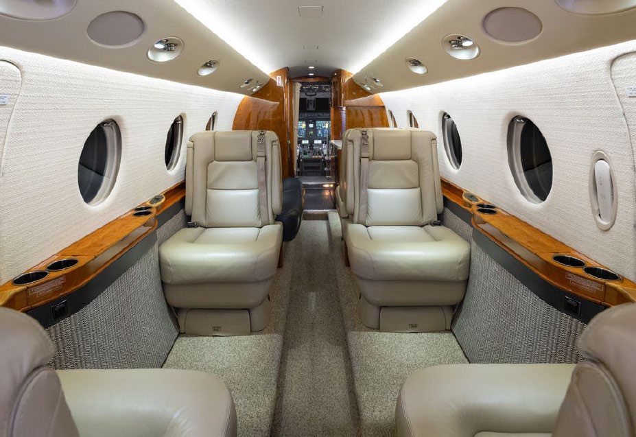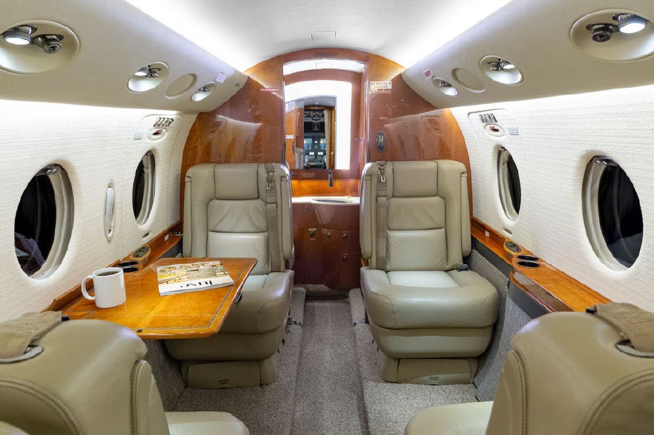 Original Beautiful eight (8) passenger cabin features a forward twoplace divan opposite a single chair followed by a four-place club in the aft cabin. In addition, the aircraft has a belted aft lavatory seat. Aft Cabin: Four (4) single seats and two (2) console tables Forward Galley: Includes (2) hot liquid containers and (1) ice drawer. Forward Cabin: Three divan seats with one forward facing seat. Aft Lav: Aft vacuum toilets with outside servicing capability |