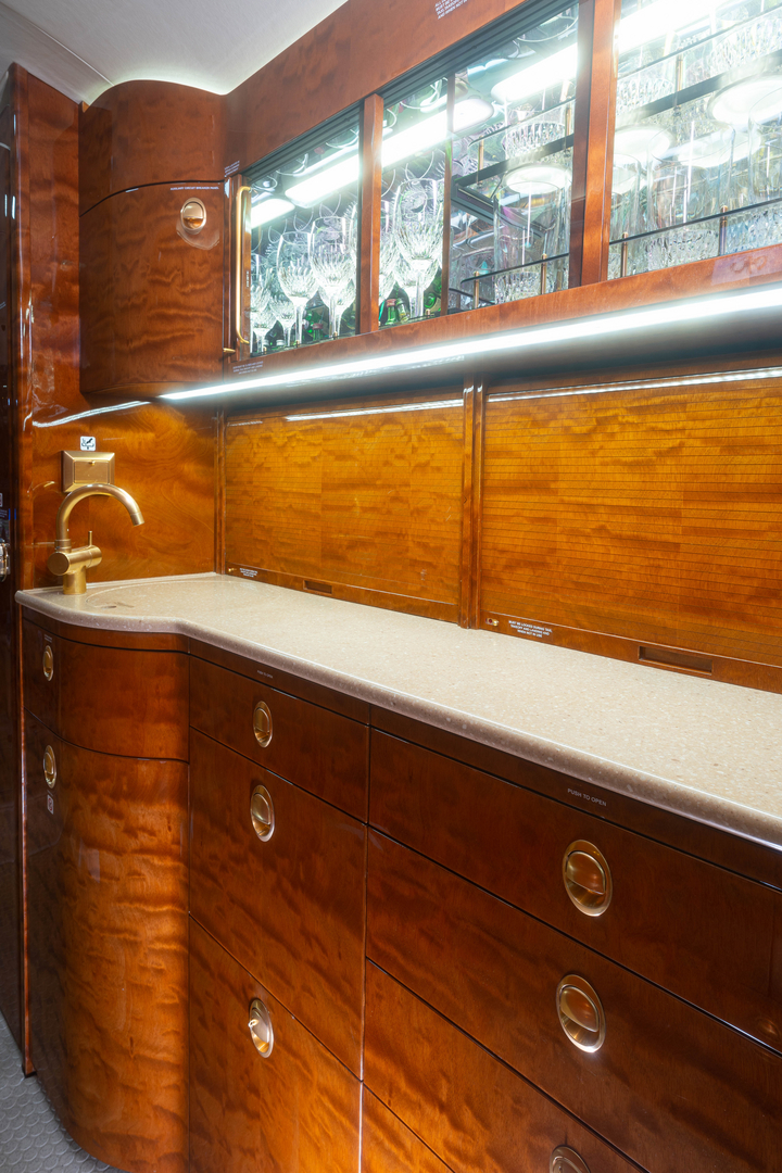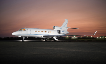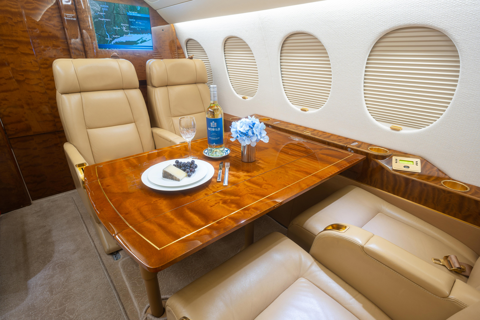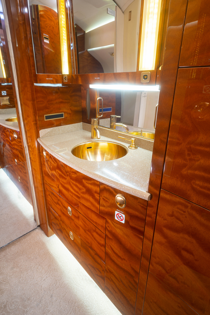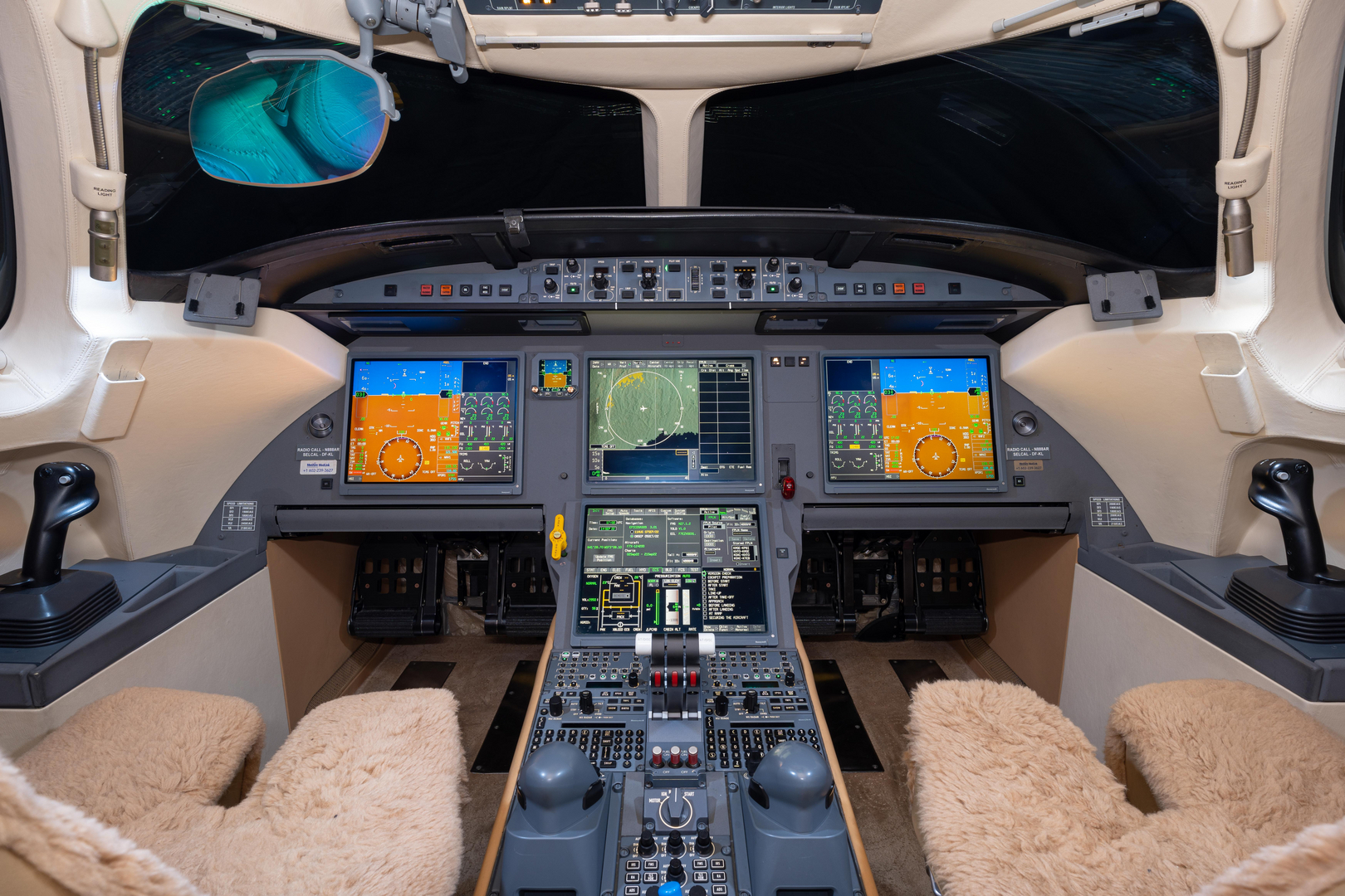 This aircraft is completed with a sixteen (16) passenger executive interior featuring forward and aft lavatories, large galley with left side annex and 3 distinct and elegant cabin zones. The galley is equipped with a refrigerator, warming oven and hot cup. The left auxiliary galley offers storage, microwave as well as the entertainment system. The forward cabin is configured with four (4) place club seating pull out executive tables. The mid cabin features a four (4) place conference group opposite a 2 place club. The aft cabin offers dual three (3) place divans. Additional storage includes a 17” forward right hand cabinet with storage drawers, 40” middle cabinet in the credenza, 35” aft cabinet for china storage. Original Interior by Dassault February 2008. All seating is done in neutral beige leather complimented by coordinating carpeting, high gloss medium colored wood and brushed bronze colored plating. Entertainment features include Honeywell AIS 2000 Satellite TV, Airshow 4000, Dual BluRay Players, Four 20” forward and aft HD monitors. Inflight connectivity is through an Aviator 700D SATCOM and GoGo Biz Avance L5 speed data system with WiFi |