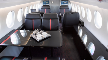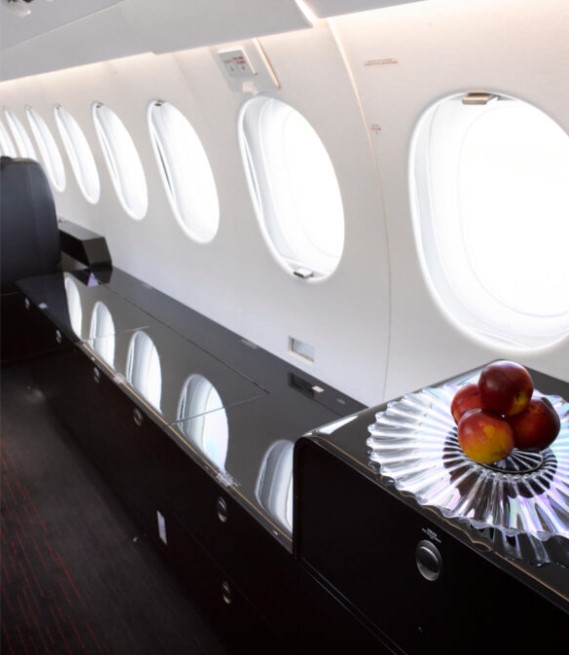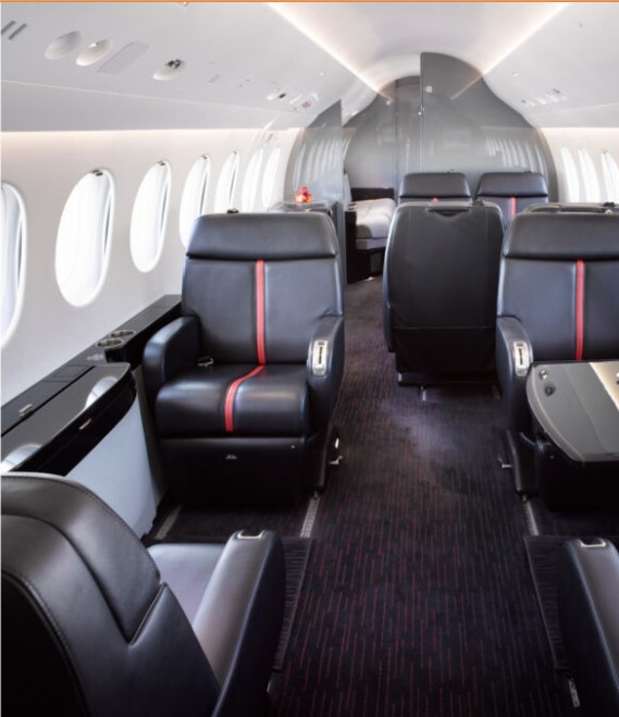 New may, 2018 by DASsault falcon. Divans recovered January, 2023 14 passenger interior. Fwd crew lavatory, Fwd Galley, fwd double club seating with executive tables, Mid Four (4) Place Dining Group with electRically adjustable dining table Opposite Credenza (Multi Purpose Storage Cabinets), Aft dual Three (3) Place Divans, Aft cabin section separated by divider with manually stowable curtain, aft lav and vanity with closet and accessible baggage compartment. L/H Galley featuring high temperature oven, microwave, hot water heater, nespresso machine, sliding door offering separation between galley and passenger cabin. R/h galley features cd/dvd player, cms, closet and storage space Dual forward 21.3 lcd monitors, aft 17” LCD monitor, and one plug in monitors Airshow 4000 |