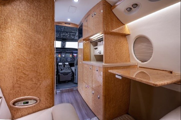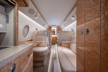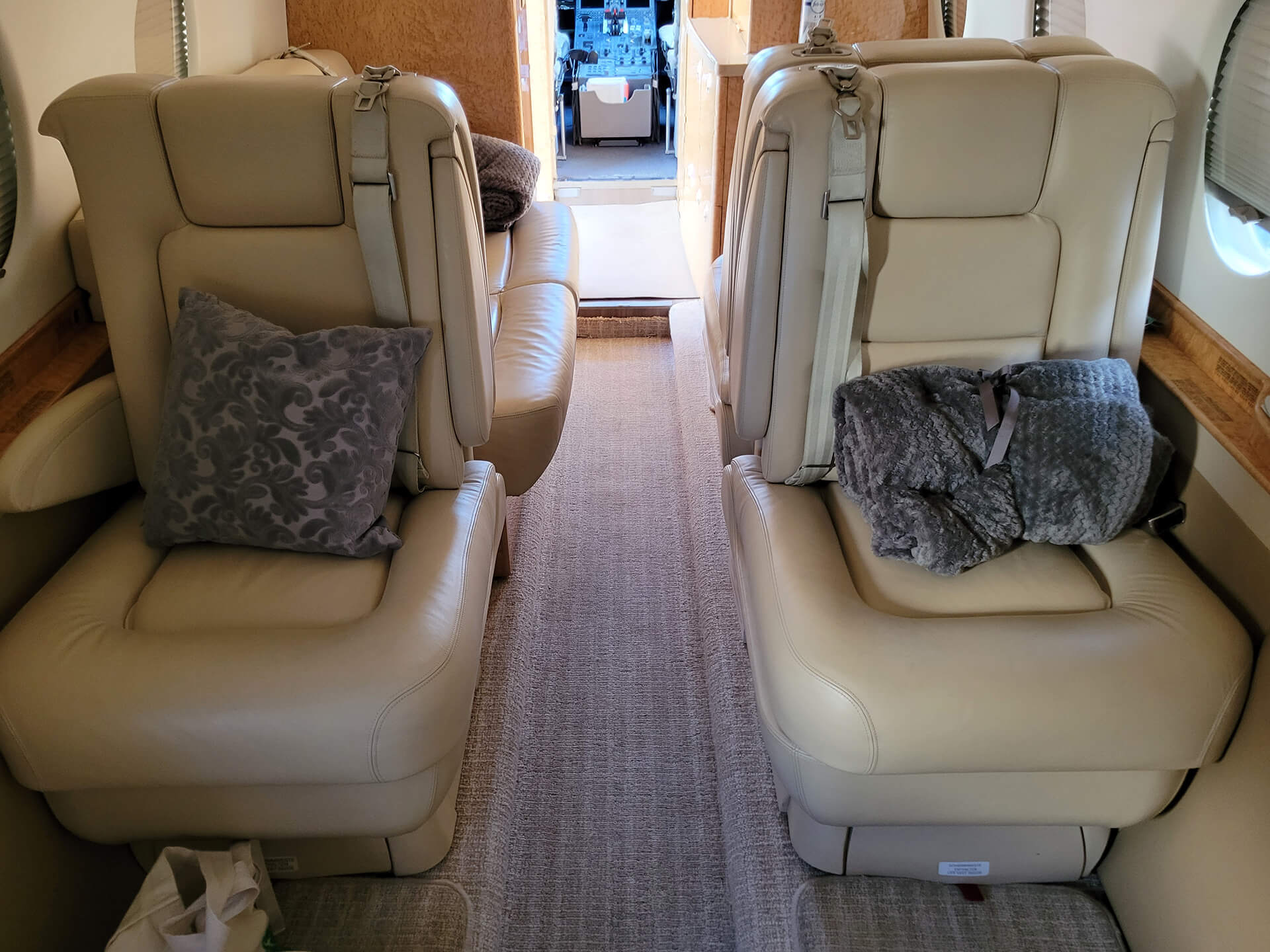 Partial Refurbishment completed by Gulfstream – June 2019 Seven (7) Passenger Interior Forward left side two (2) place Divan Forward Single Chair facing single Chair Aft four (4) place club seating Belted Aft Lav for an extra passenger Forward Right-Side Refreshment Center with Microwave |