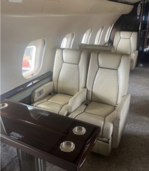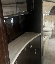 13 PASSENGER FIREBLOCKED INTERIOR FEATURING: FOUR (4) PLACE FWD CLUB IN ZONE 1 FOUR (4) PLACE CONFERENCE / DINING OPPOSITE CREDENZA IN ZONE 2 TWO (2) PLACE CLUB OPPOSITE 16G THREE (3) PLACE DIVAN IN ZONE 3 FWD GALLEY INCLUDING MICROWAVE, COFFEE MAKER, AND OVEN DUAL FWD AND AFT LAVATORIES NOTE- THE DIVAN IS REDUCED TO TWO PASSENGERS WHEN USING THE REMOVABLE BULKHEAD |